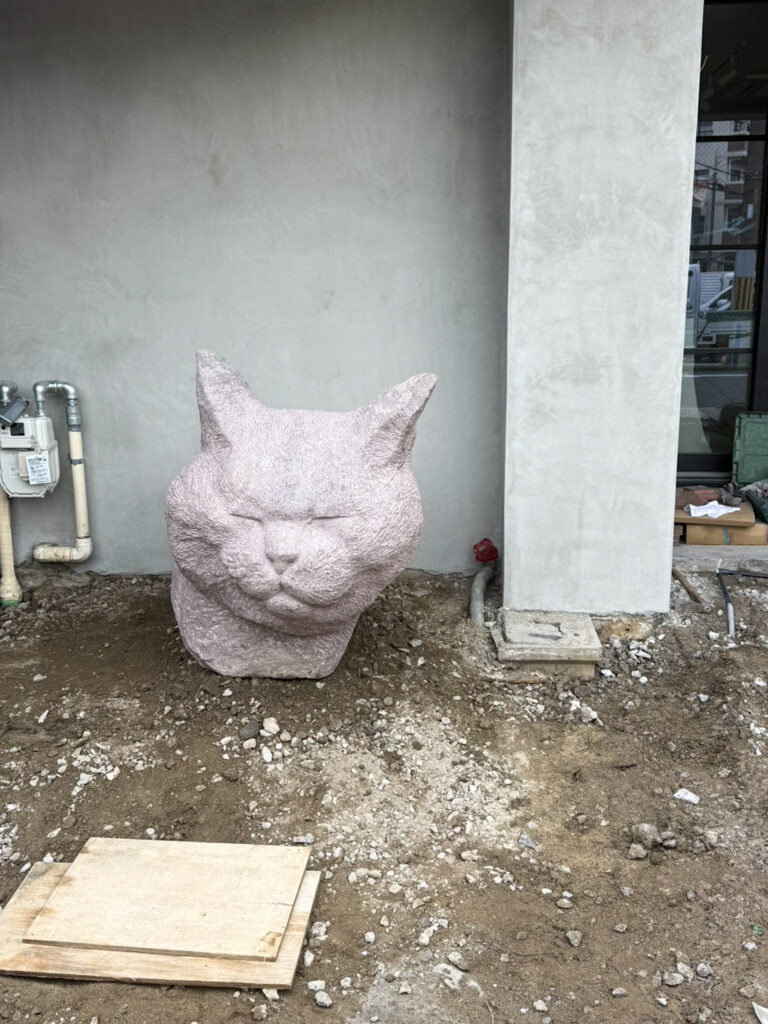 新社屋にシンボル爆誕!猫の幸せをつくる私たちを、そっと見守ってくれる石像です。