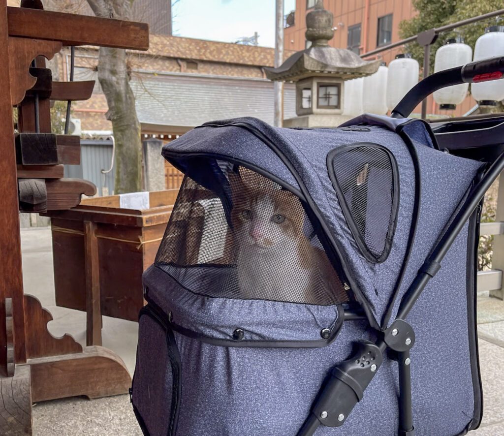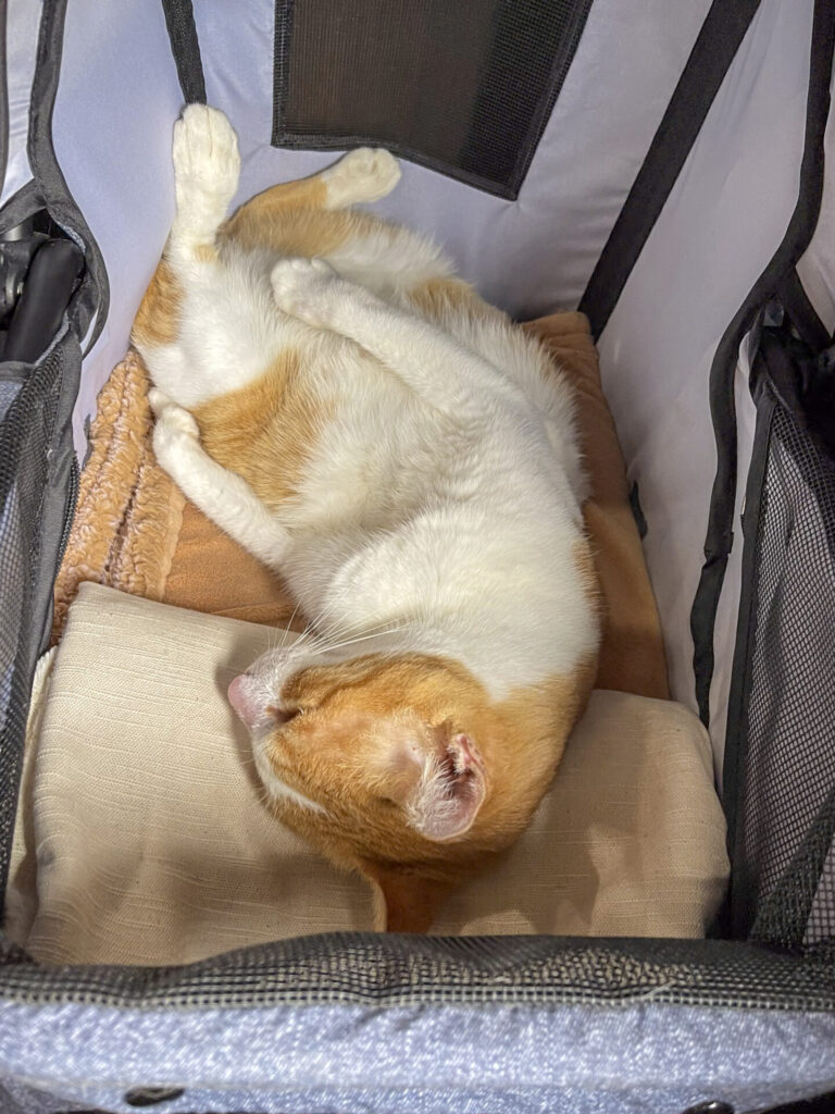 子猫用に購入したベビーカーがお気に入りのお昼寝スポットに。