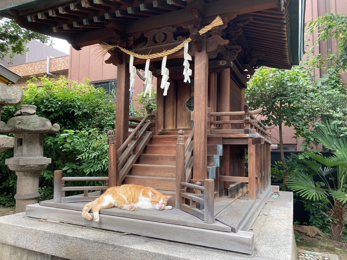 ねこ大家の会社近くにある神社で過ごす猫がいました。