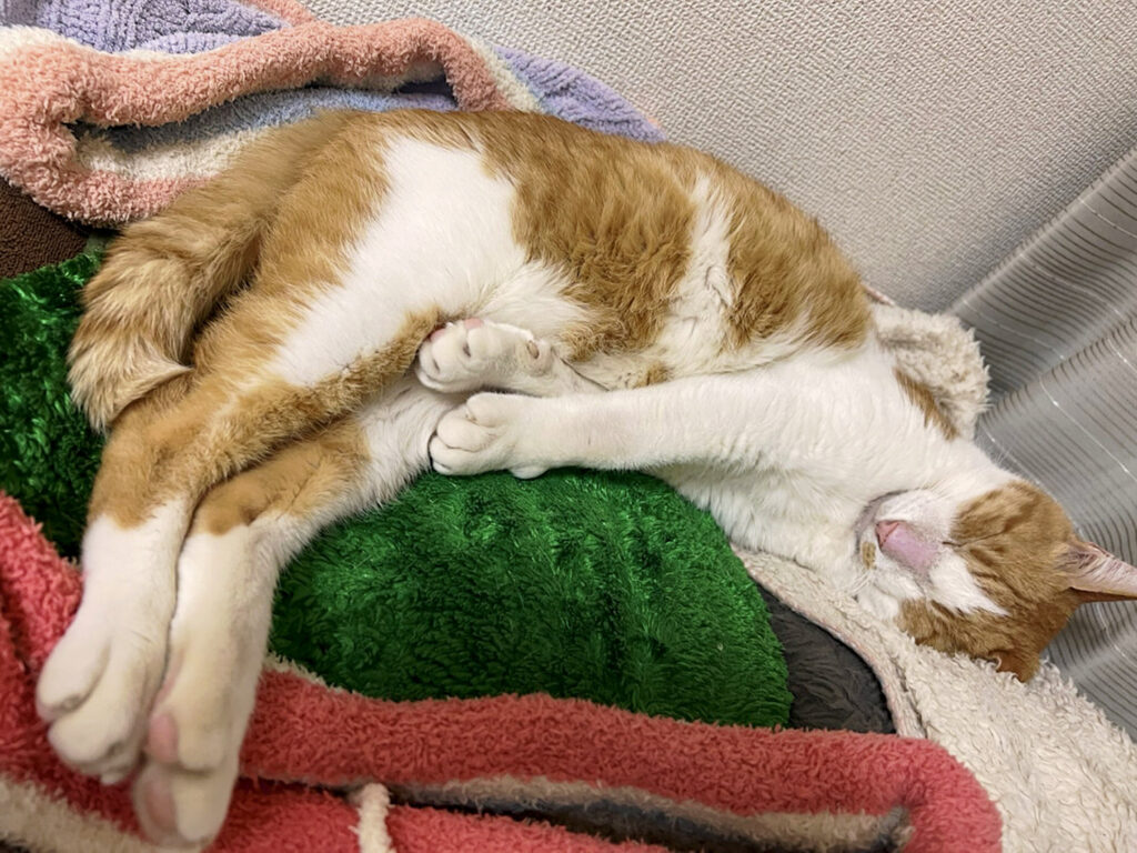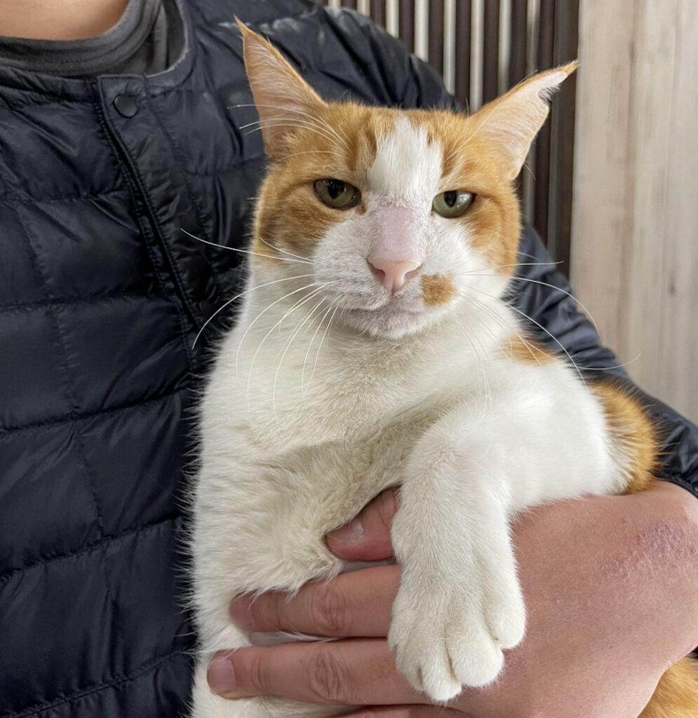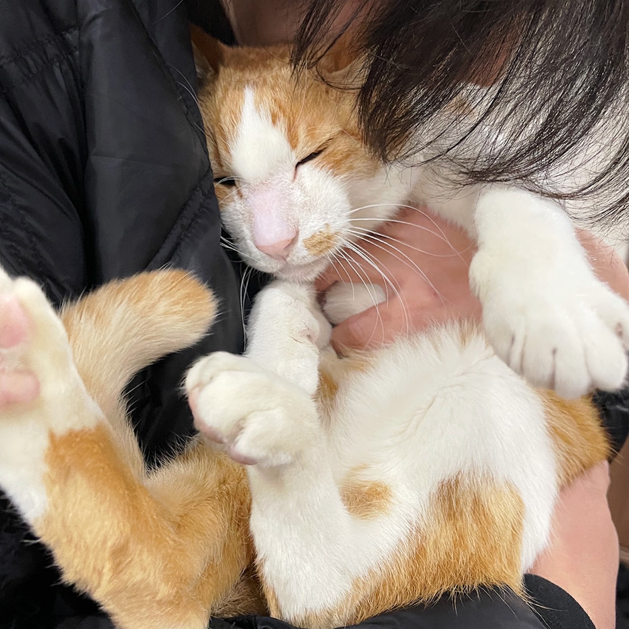 ただ、福爺は人には慣れていますが猫は苦手です。唯一気を許していたのが先程紹介した神社で一緒にご飯をもらっていた子だけでした。さらにエイズ陽性のため、先住猫ちゃんがいるご家庭ではストレスが増える懸念もありました。
