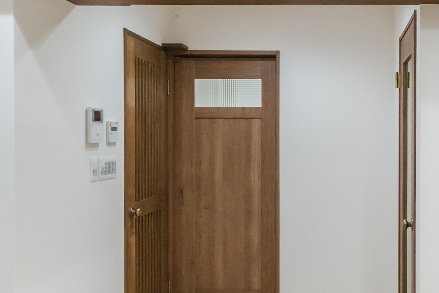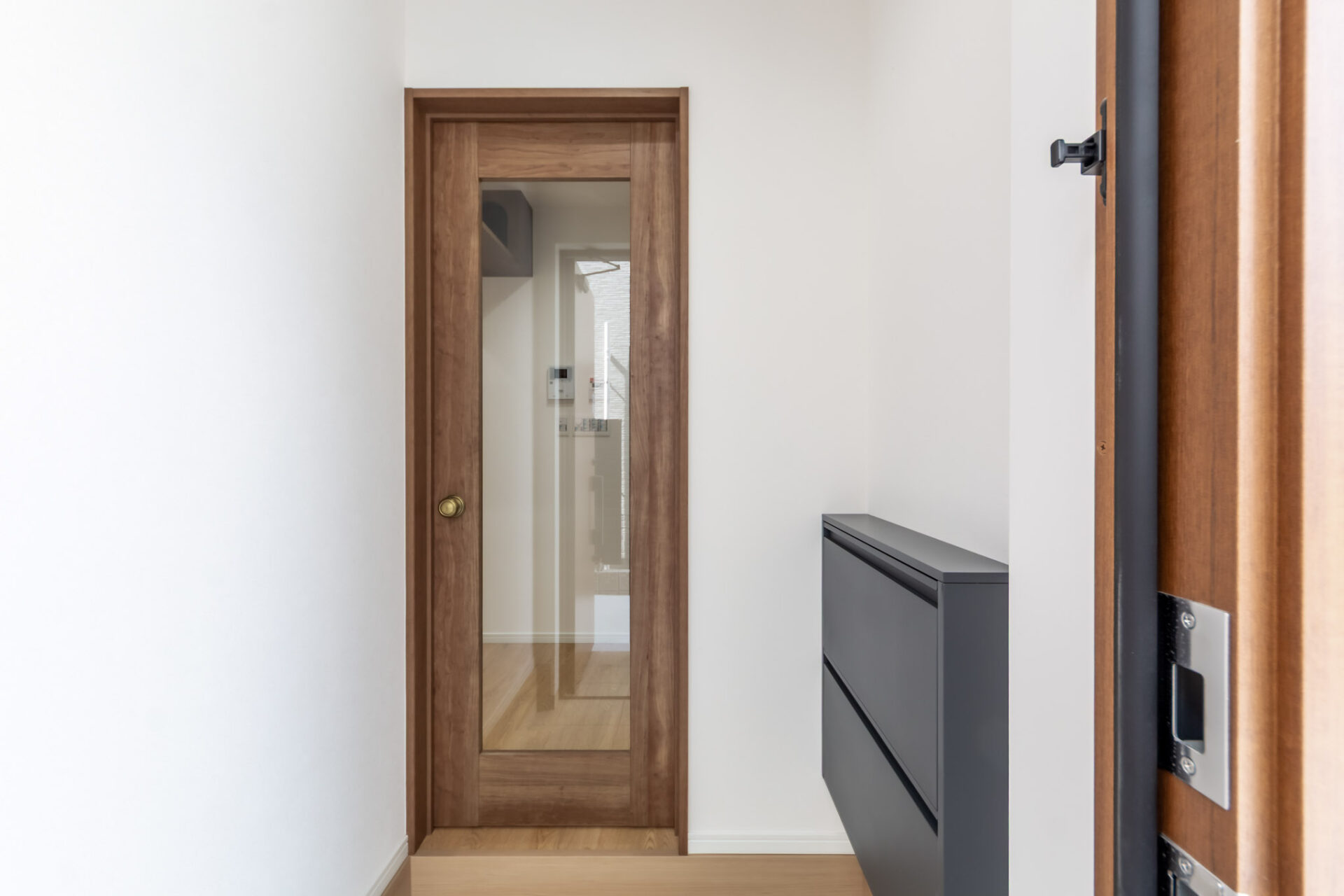 玄関を開けると、まず目に入るのは透明ガラスの脱走防止扉。