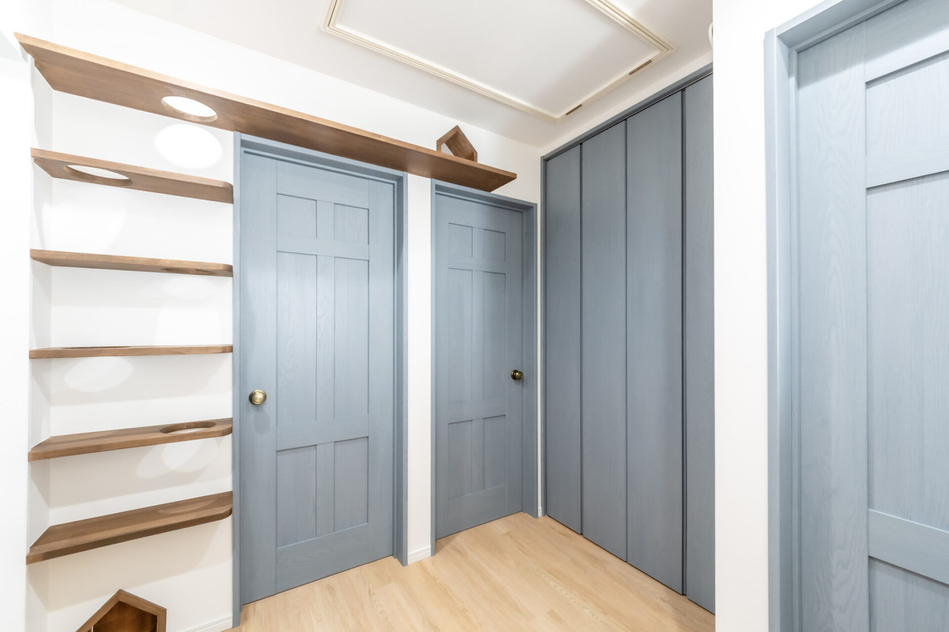 また、2階の扉はトイレ以外をブルーで統一。