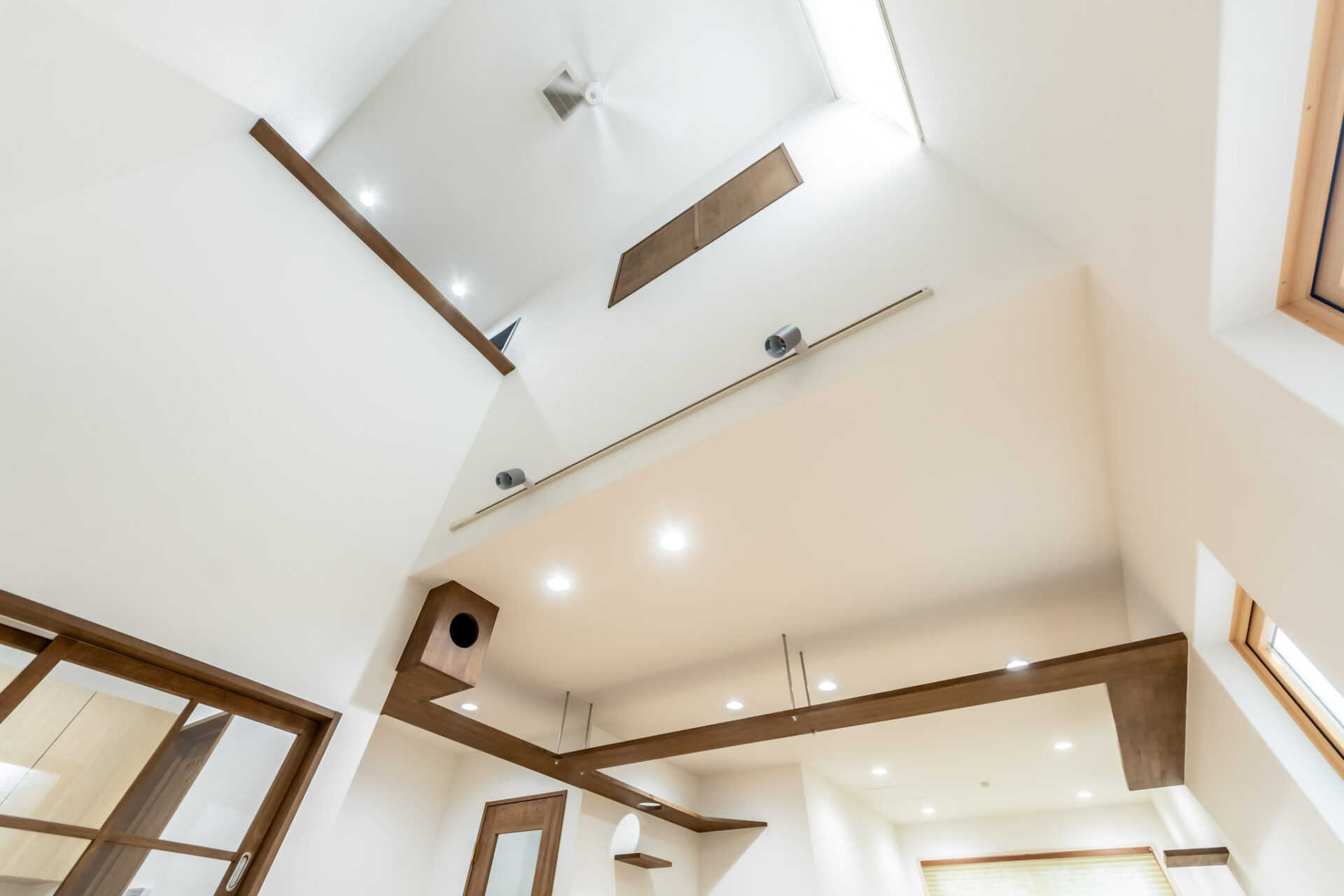 吹き抜けには、室内にやわらかな自然光を取り込めるよう採光用の窓を設けました。