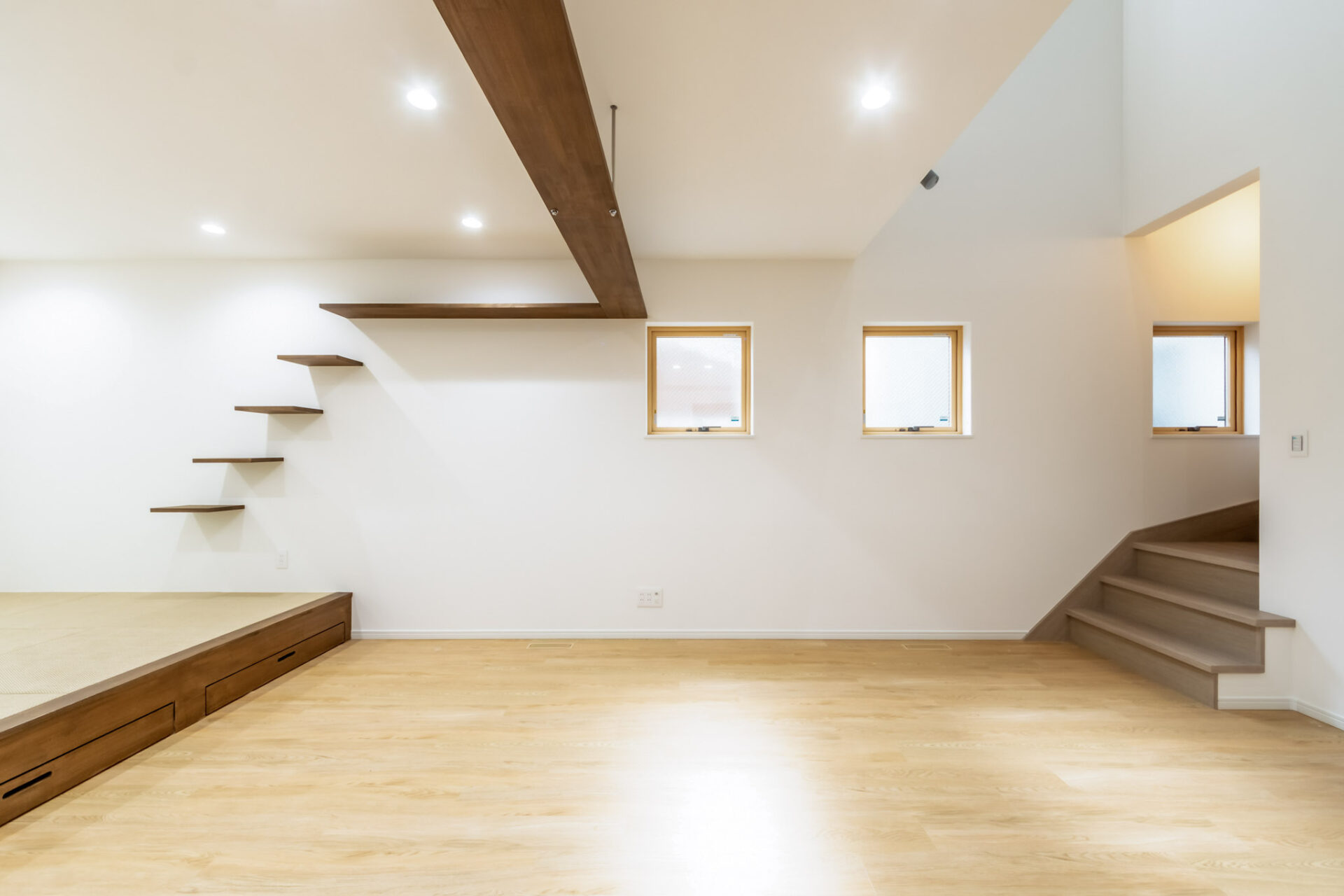 さらにこのリビングには、奥様が「ぜひ作りたい」と希望された、3帖の小上がりスペースを設けました。