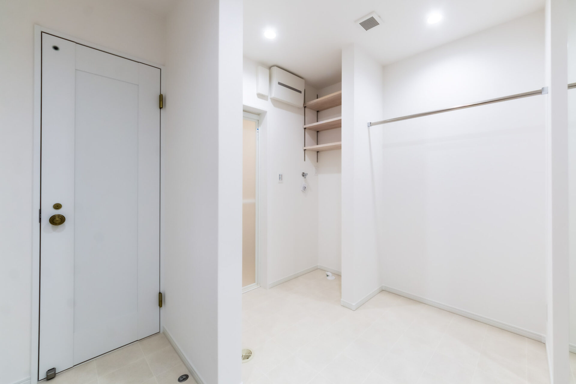 ホールには収納用のクローゼットも設け、書類や日用品をすっきりとしまえる実用的なスペースに。