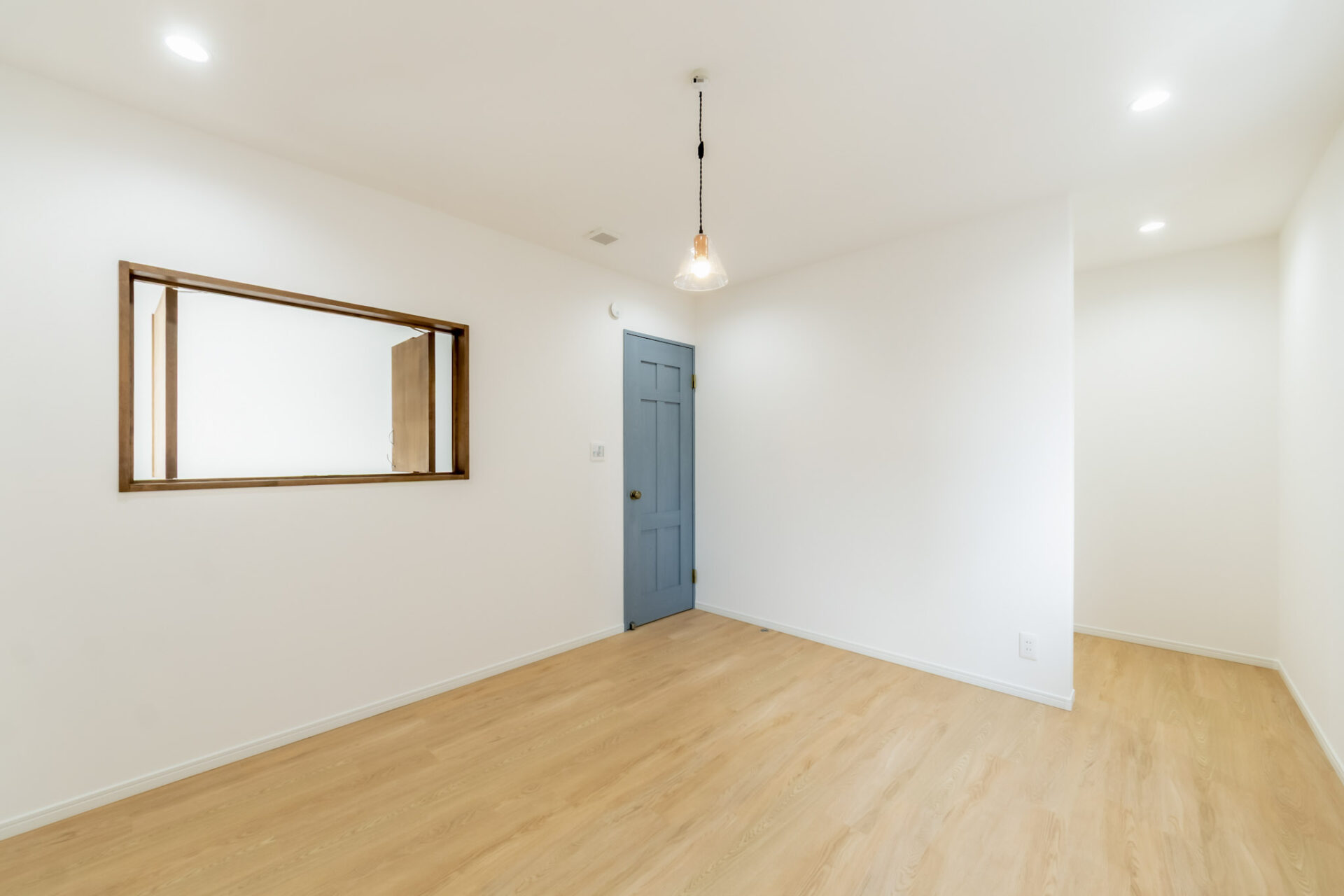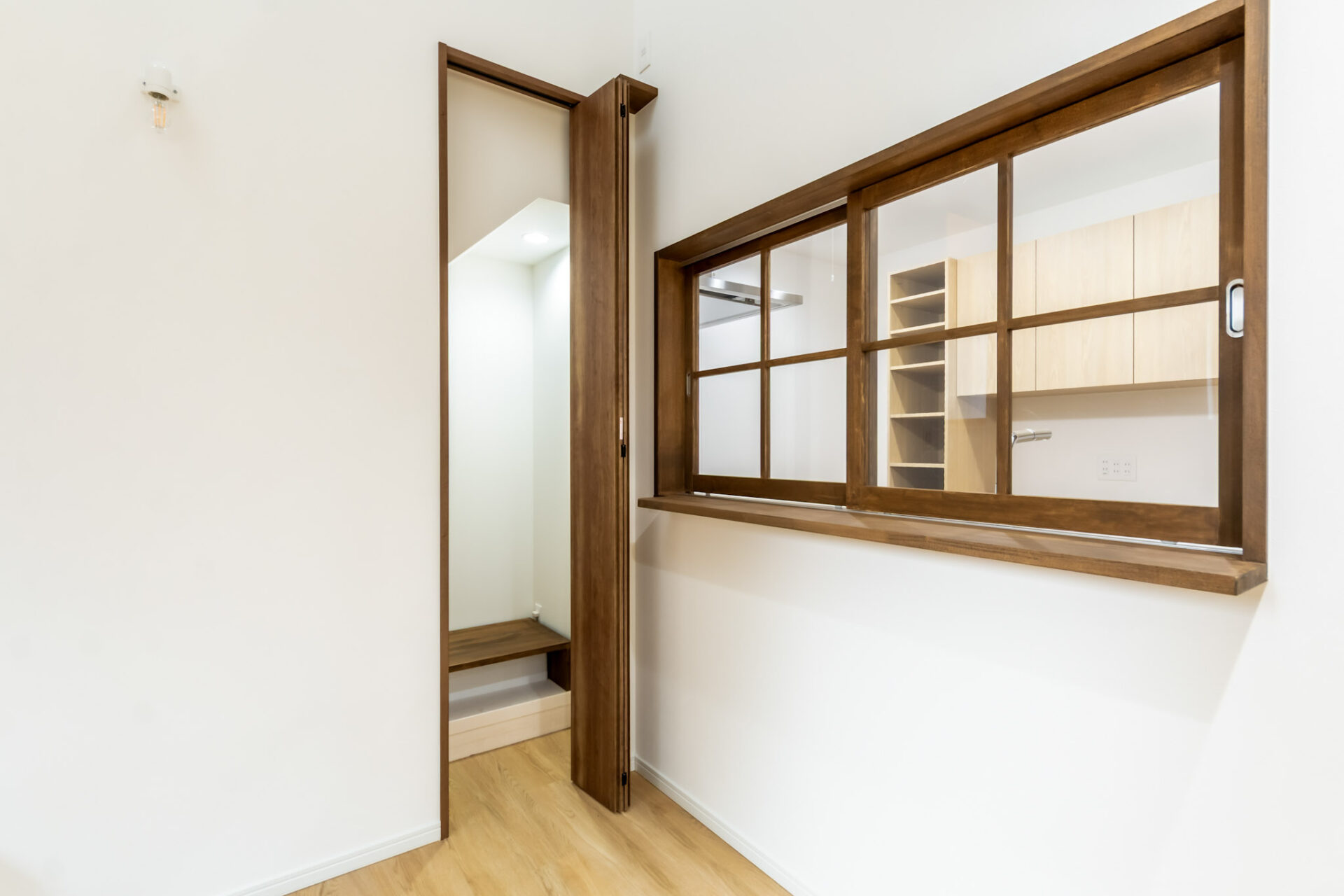 寝室は猫ちゃんが入らない空間ですが、この室内窓を開けると、ホールの縁にいる猫ちゃんが不思議そうにこちらを見てくるのだそう。