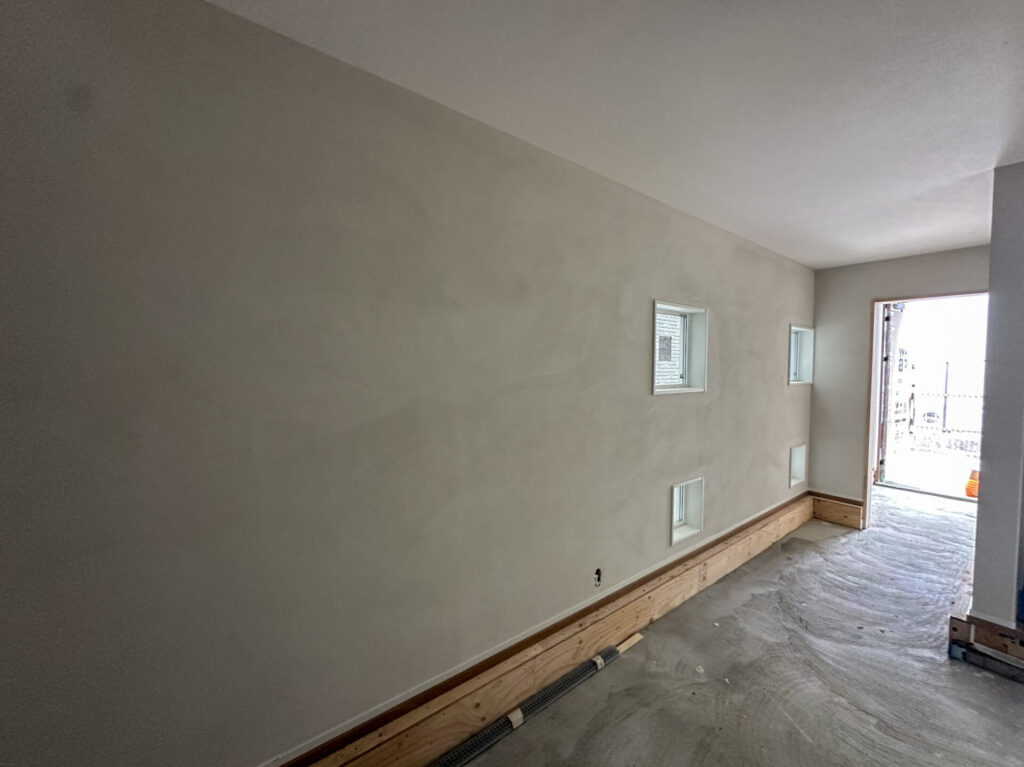 壁の仕上げはシリカライムという左官材を採用しました。