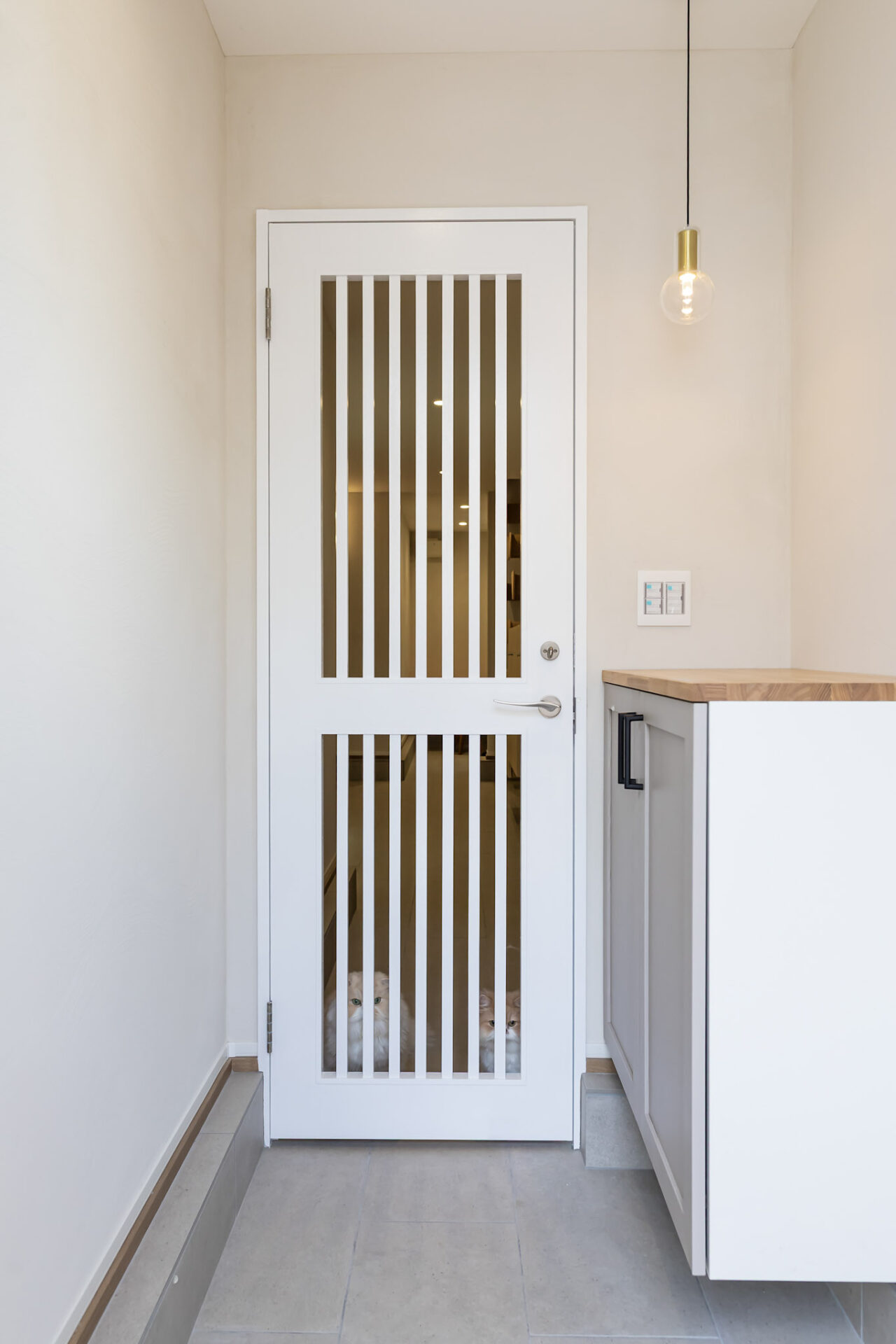 猫ちゃんが開けられないようドアノブは上に上げて開けるタイプにしています。