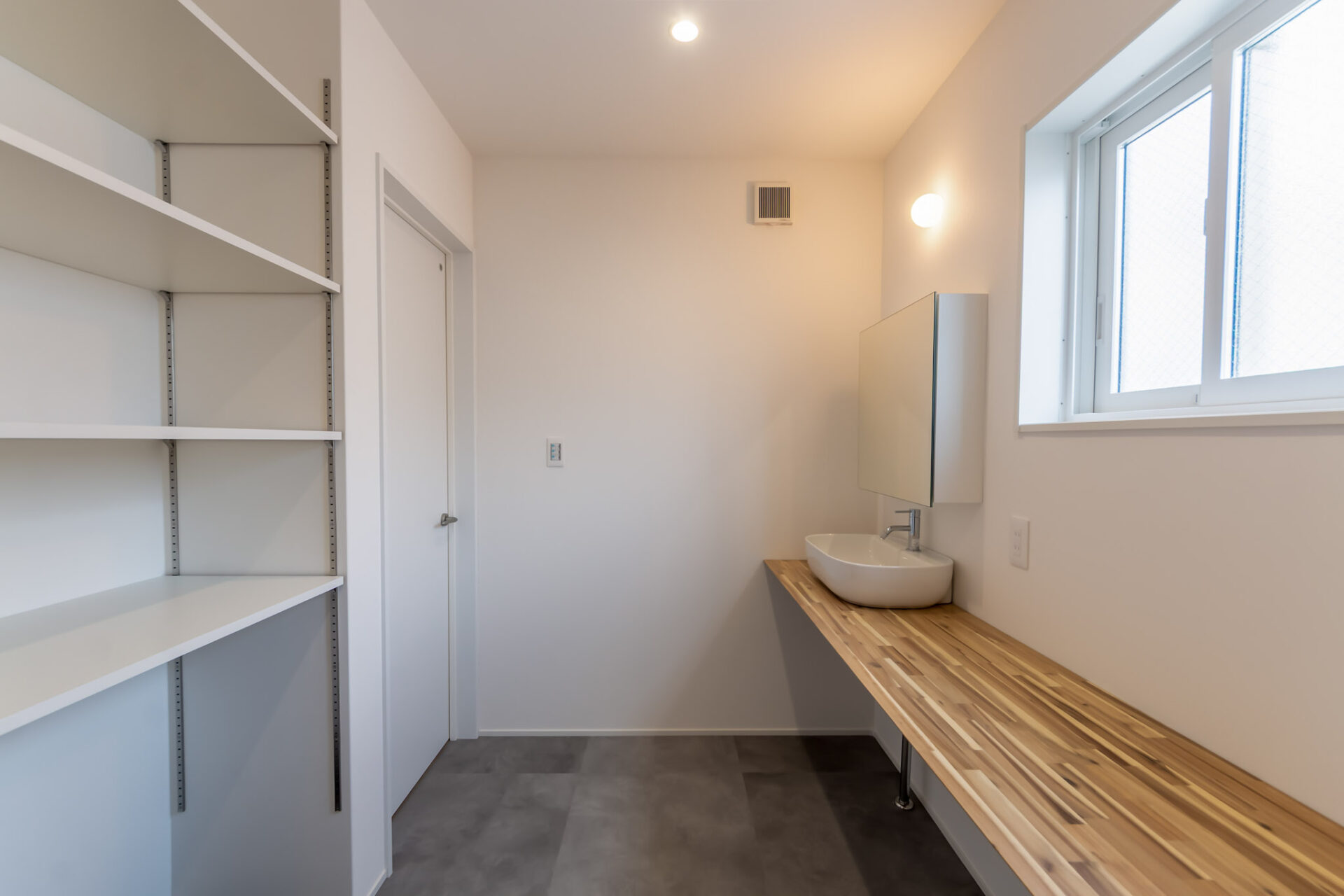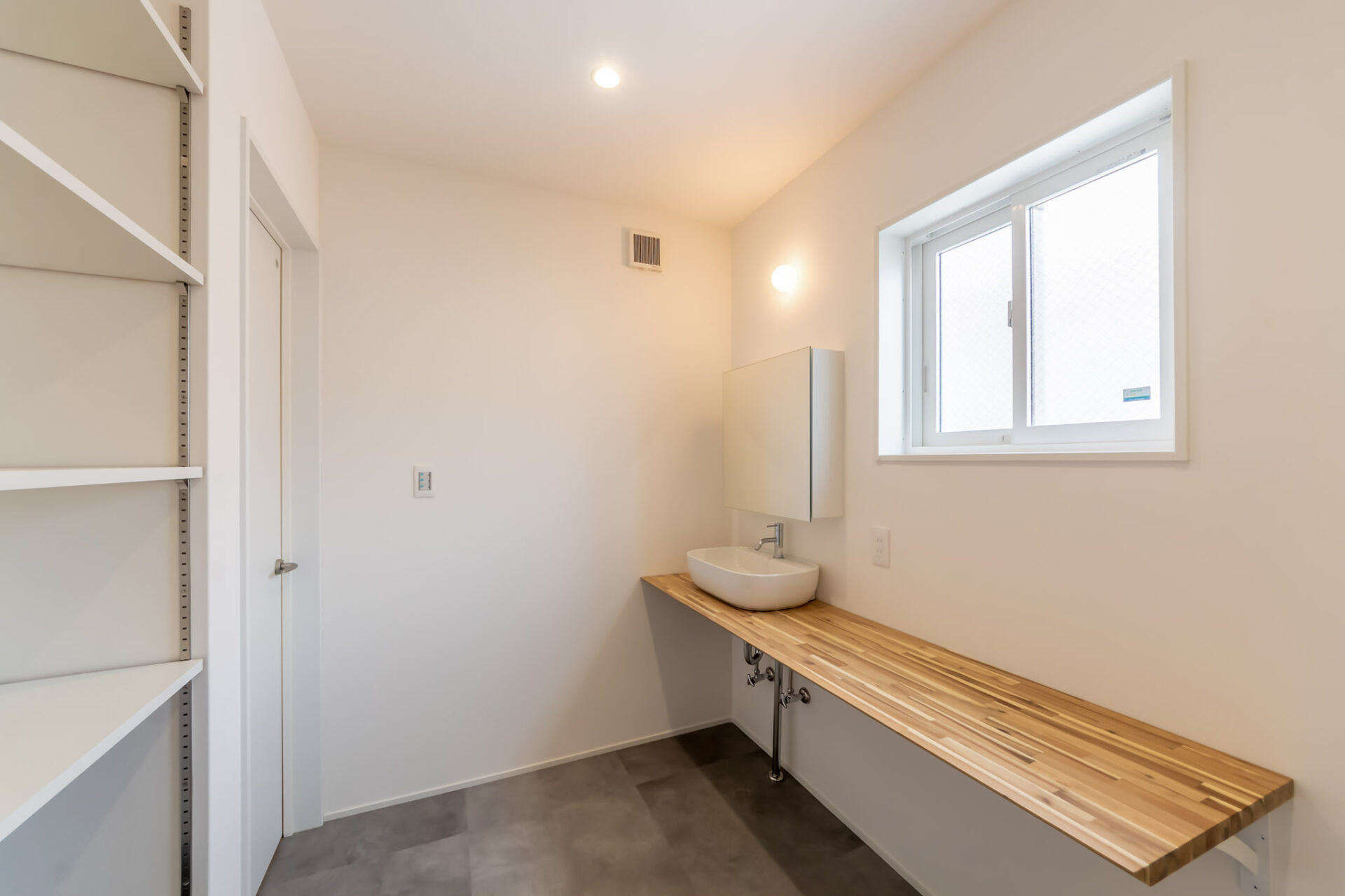 脱衣所には、使い勝手の良い作業カウンターを設置しました。