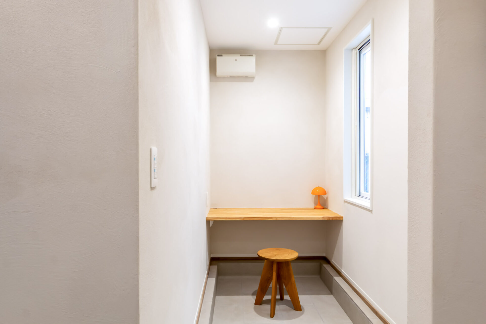 通り土間の先には、小さなかわいらしい書斎スペースを設けました。