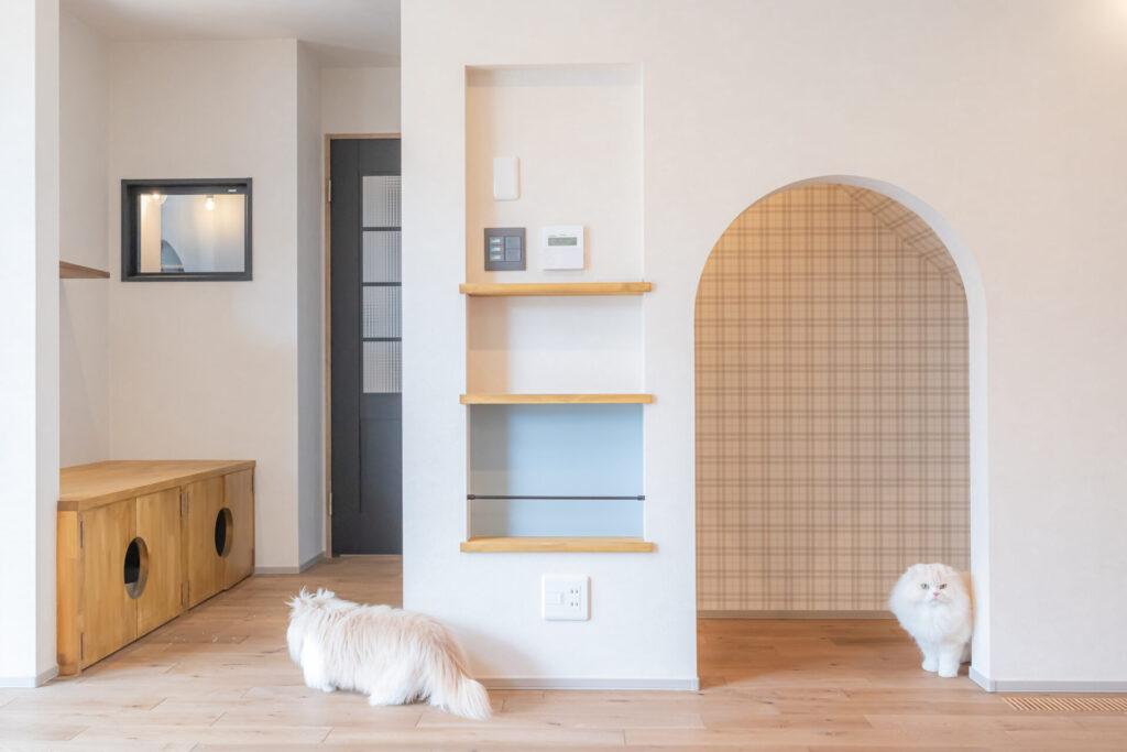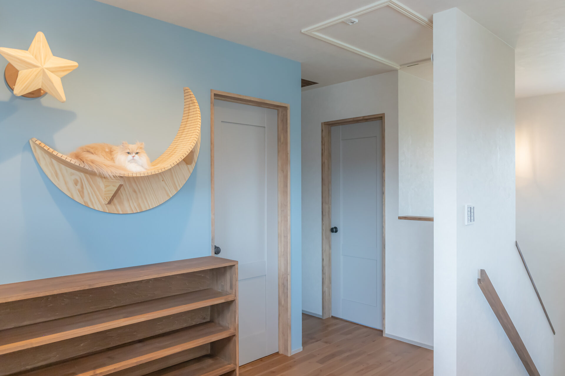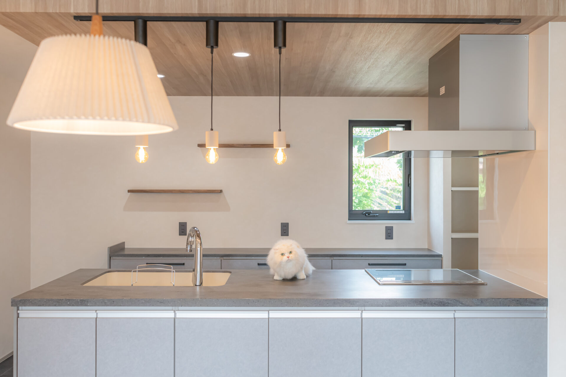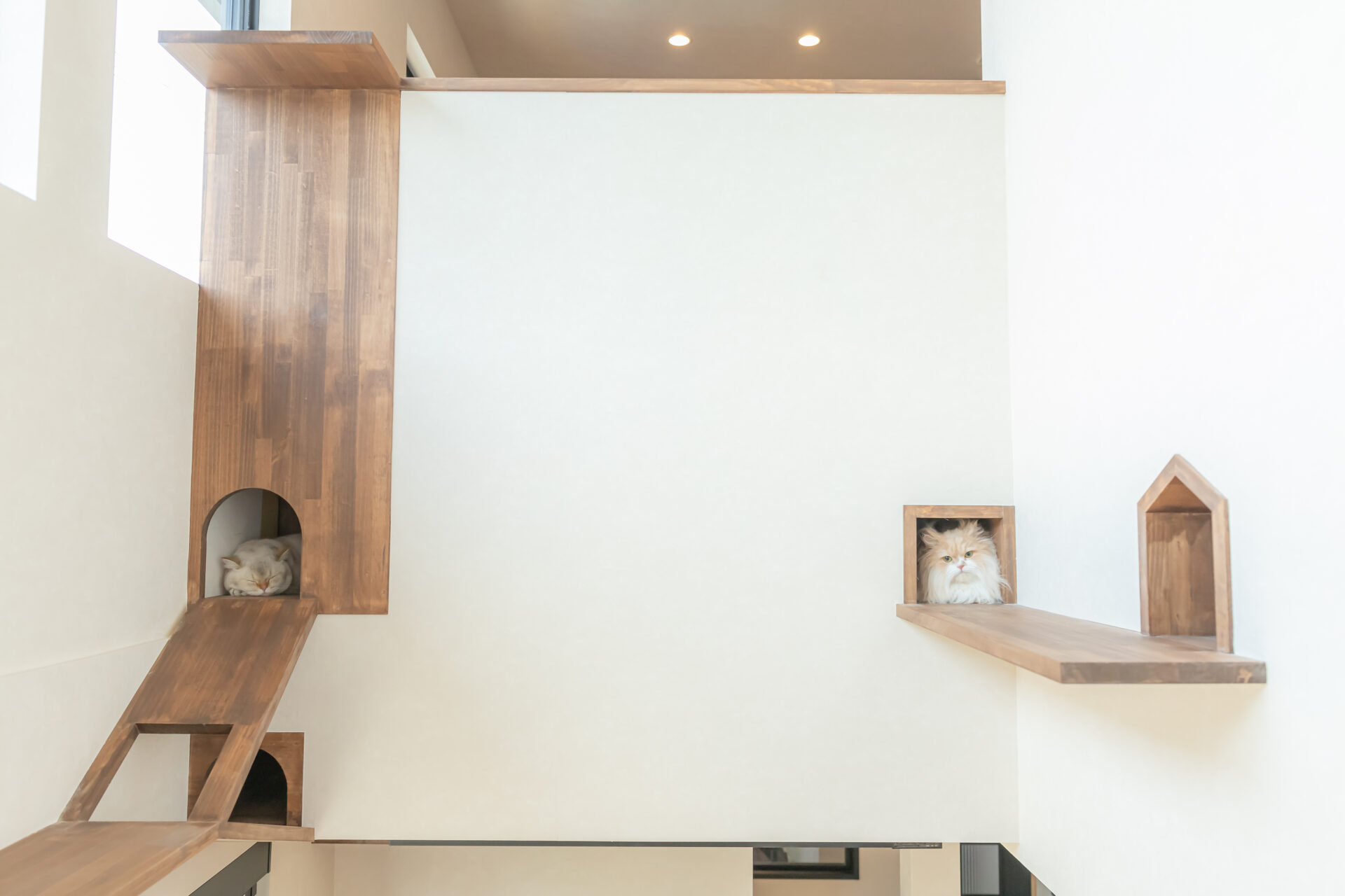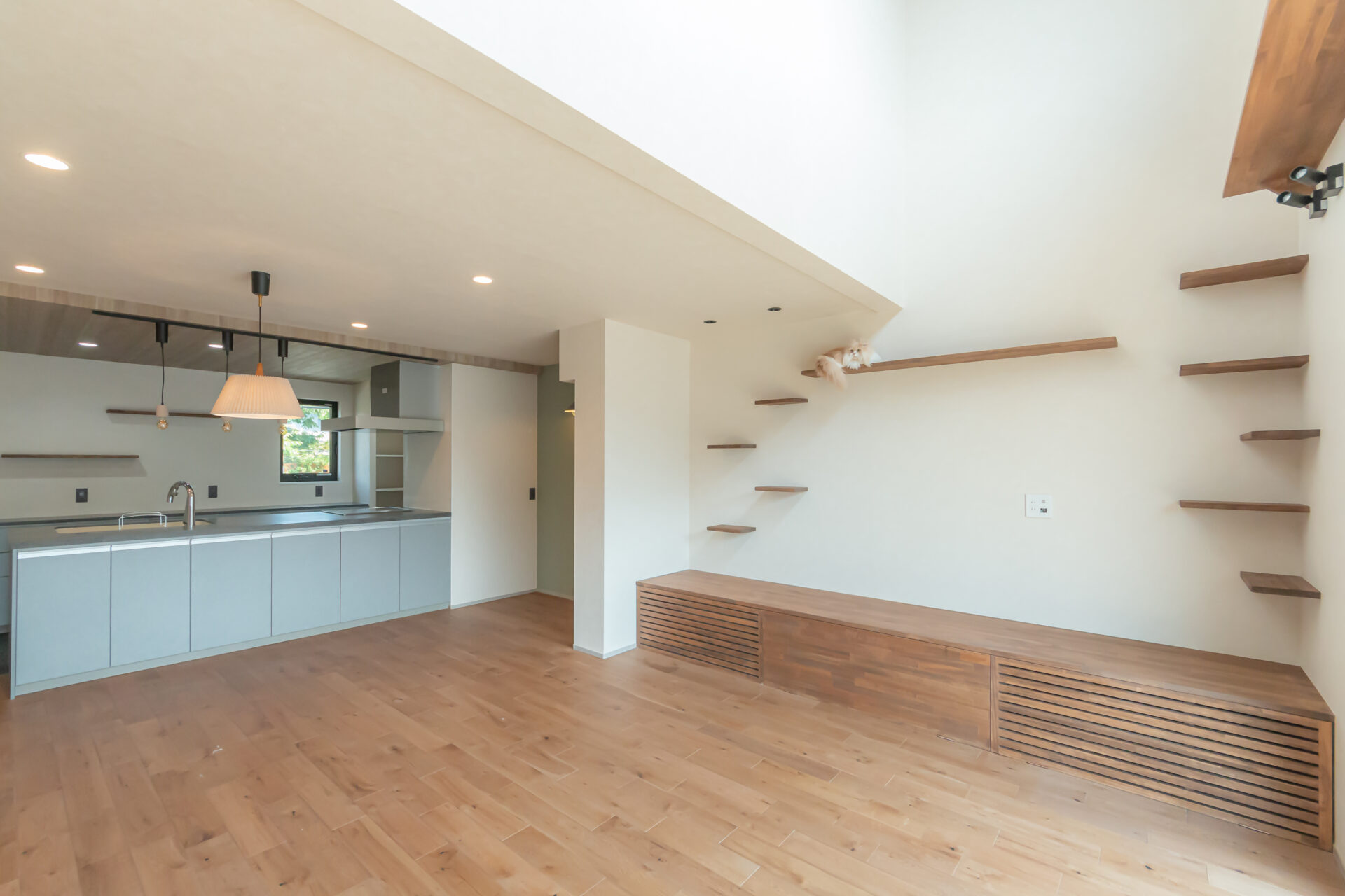 完成写真 猫と人が快適に暮らす家ー完成写真ー 2024年6月に引き渡しが完了いたしました。 外構工事がまだ残っていますが、すでに暮らしておられます。猫もお子さんたちも走り回って楽しそうでなによりです。 高断熱高気密の住宅は声も漏れにくいため、お子さんに「静かにしなさい」と言うことも減るでしょうね。まわりに気を遣いながら暮らすのはあまりにもストレスですし、猫にとっても人にとっても不健康な家になりかねません。 高断熱高気密の住宅はただただ部屋を温かくするだけじゃなく、その家に住む人たちを精神的にも良い方向へ導いてくれる気がします。 前の記事 次の記事 一覧へ戻る