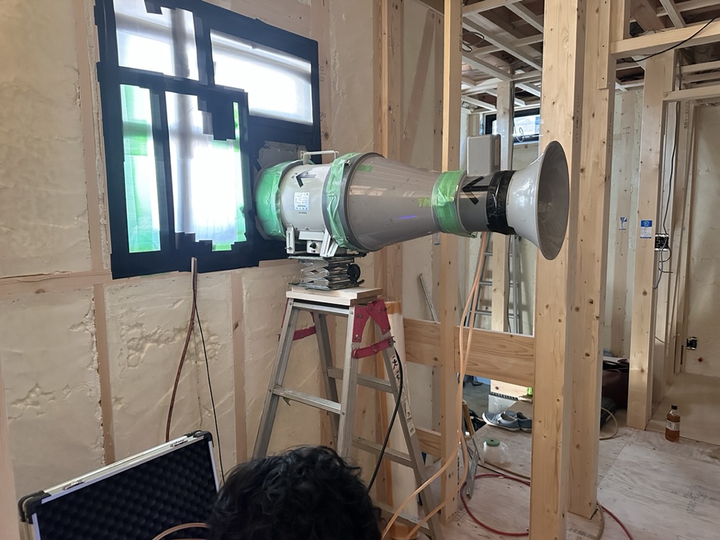 順調に工事は進んでいき、途中で気密測定を行いました。