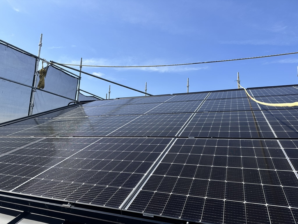 外壁はガルバリウム鋼板を採用しました。特徴は軽くて、長持ちするということです。デメリットは傷がつきやすいことです。物が少し当たるだけでも傷がつきますので、気になりそうな方にはおすすめはしないです。耐震性や長持ちという部分でガルバリウム鋼板を採用いたしました。