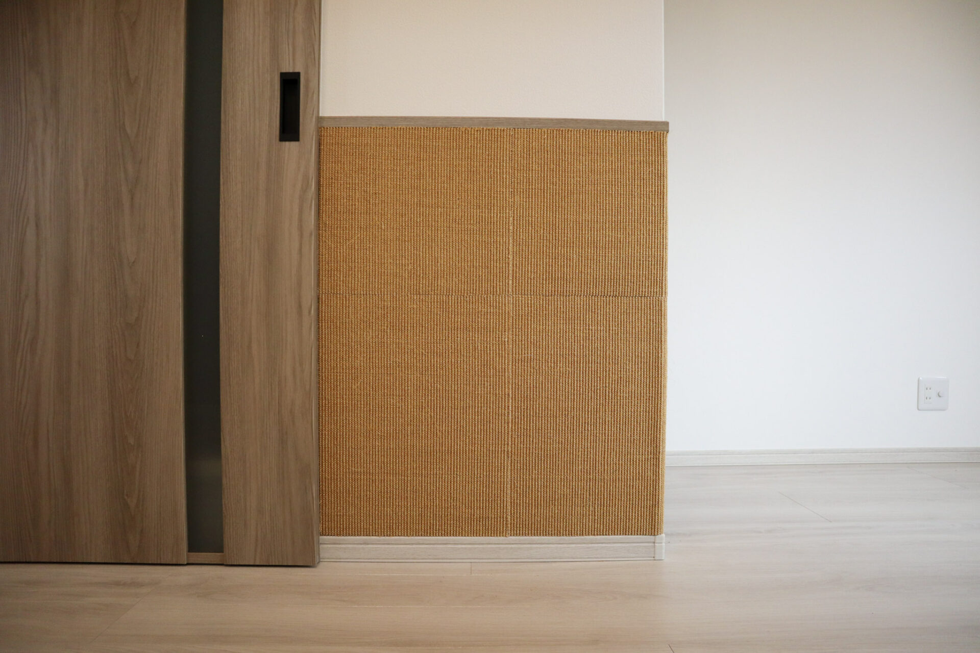 さらに、壁の一部分には猫ちゃん専用の爪とぎシートを貼りました。