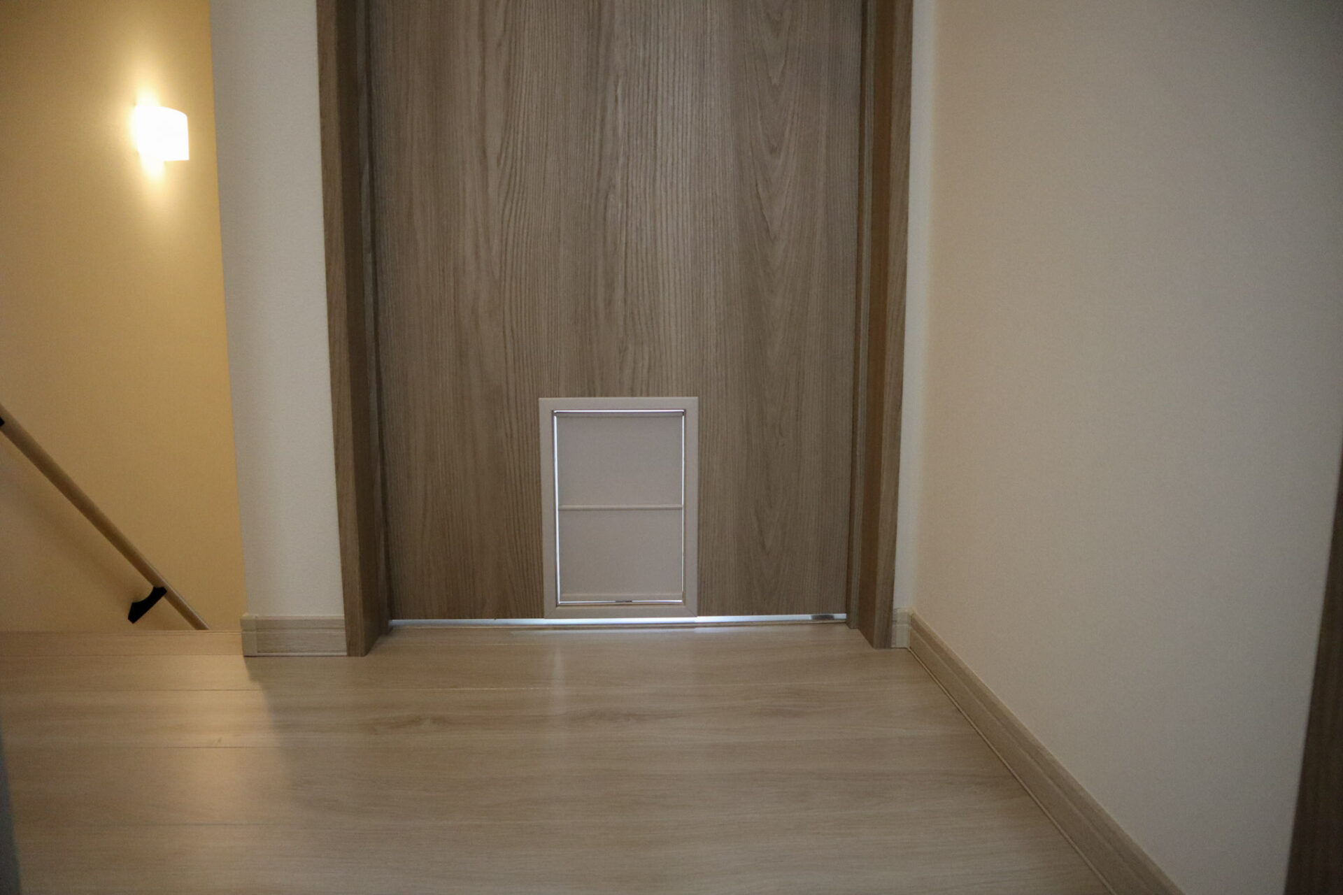 2部屋目は、ドアに猫扉を備えた、猫ちゃんが自由に出入りできるお部屋。