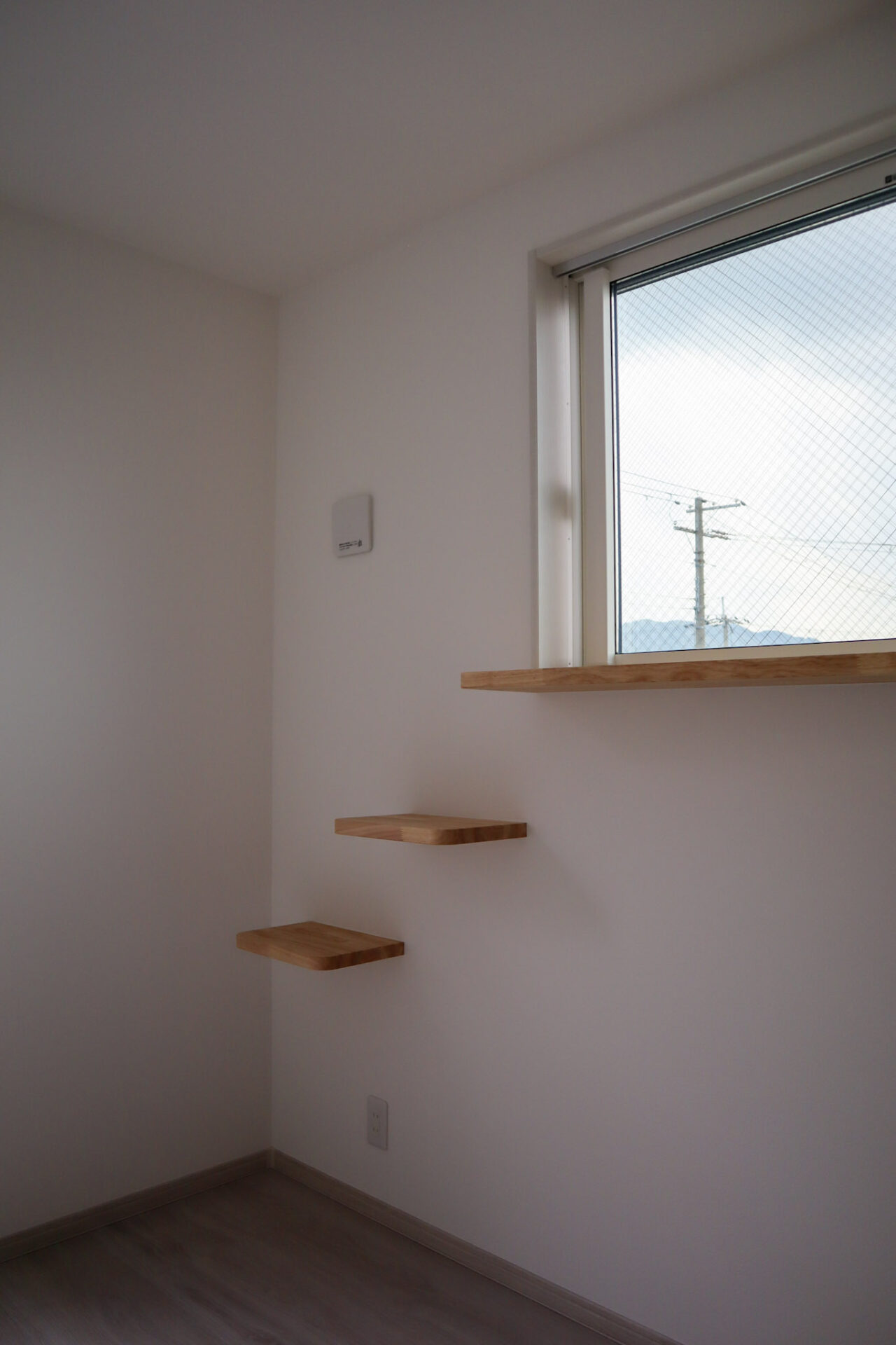 広さ6.8帖で、窓のカウンターへとつながるキャットステップも設置しました。
