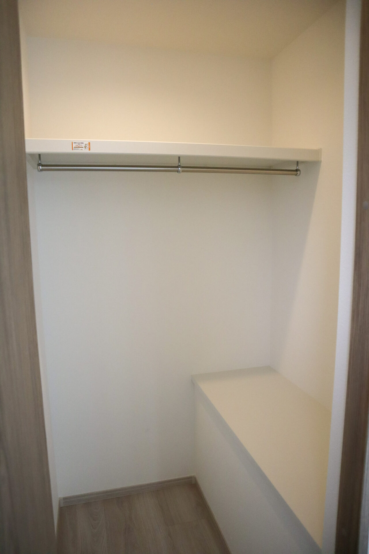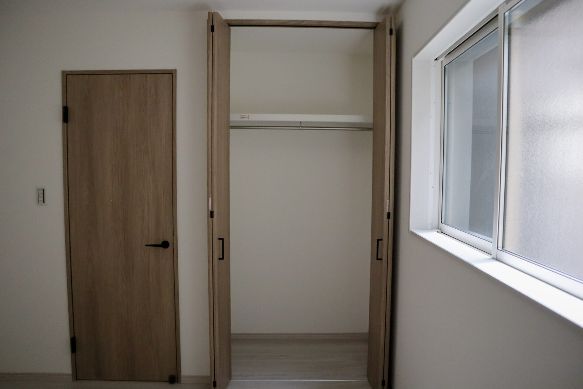 大容量の収納スペース付きで、衣類や季節物もしっかり収まり、収納に困ることはありません。書斎やワークスペースとして使うのもおすすめで、暮らし方の幅が広がる一室です。