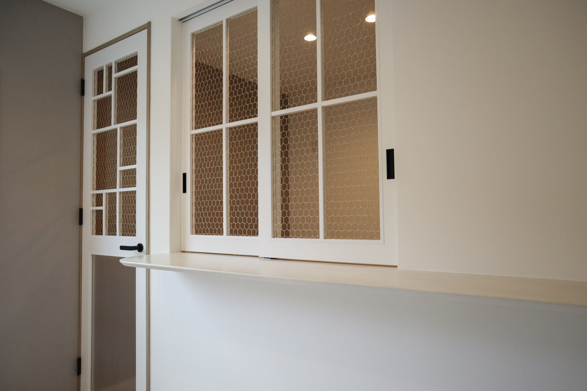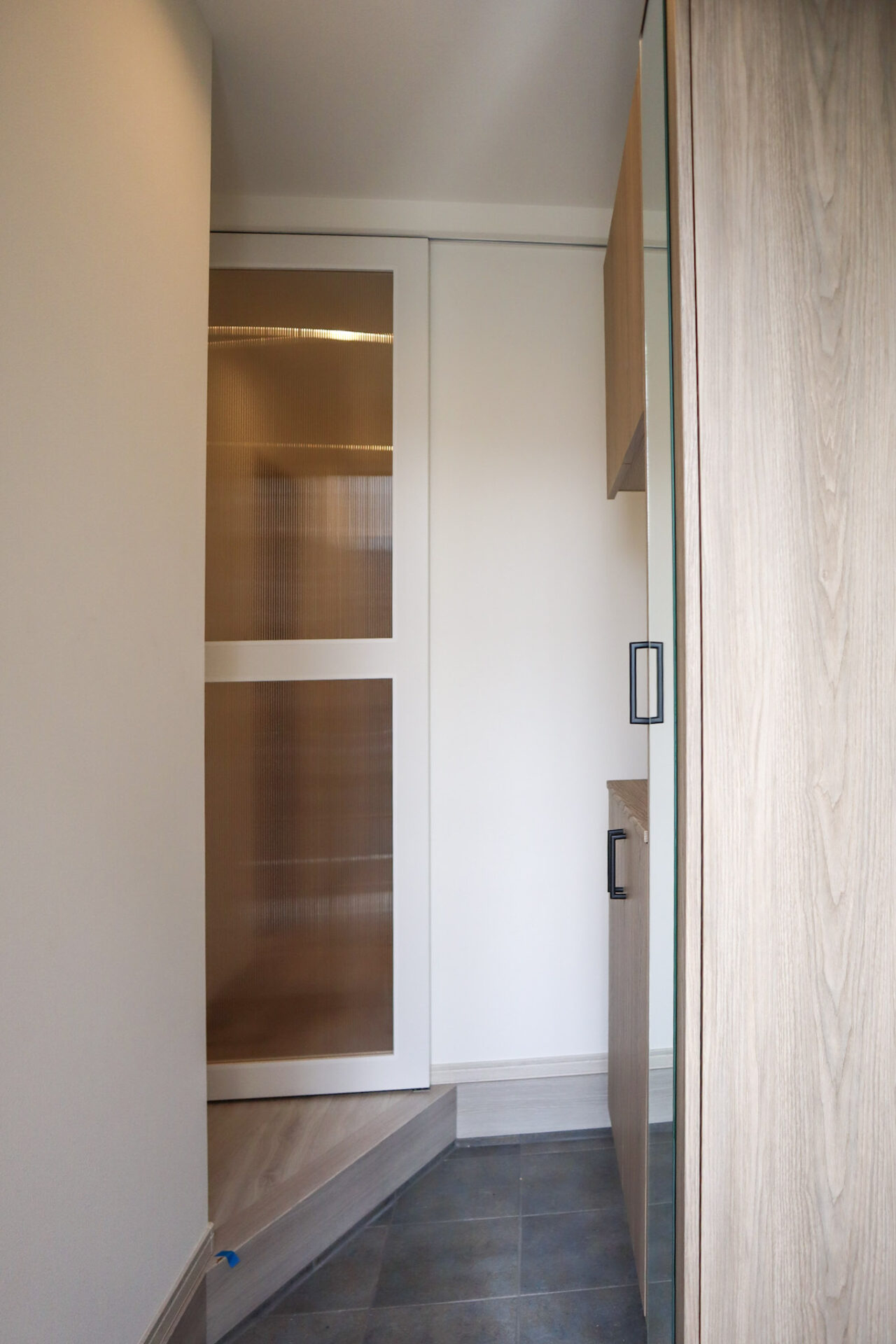 半透明の扉は、外からの視線をやわらかく遮り、プライバシーもしっかり確保。