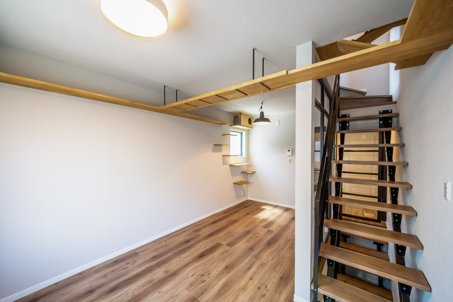 階段を登って奥のお部屋にはキャットステップとキャットウォークを設置しました。