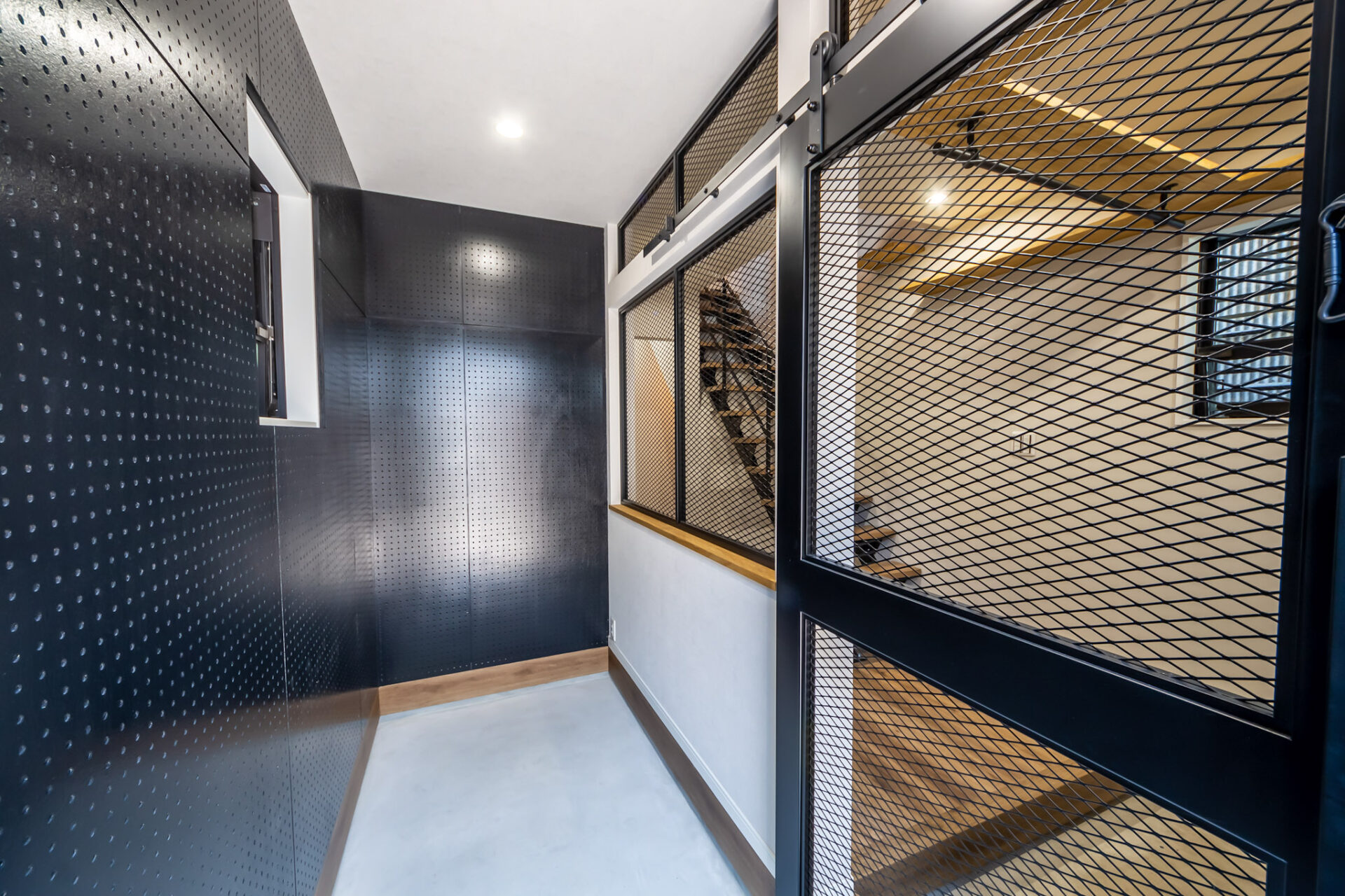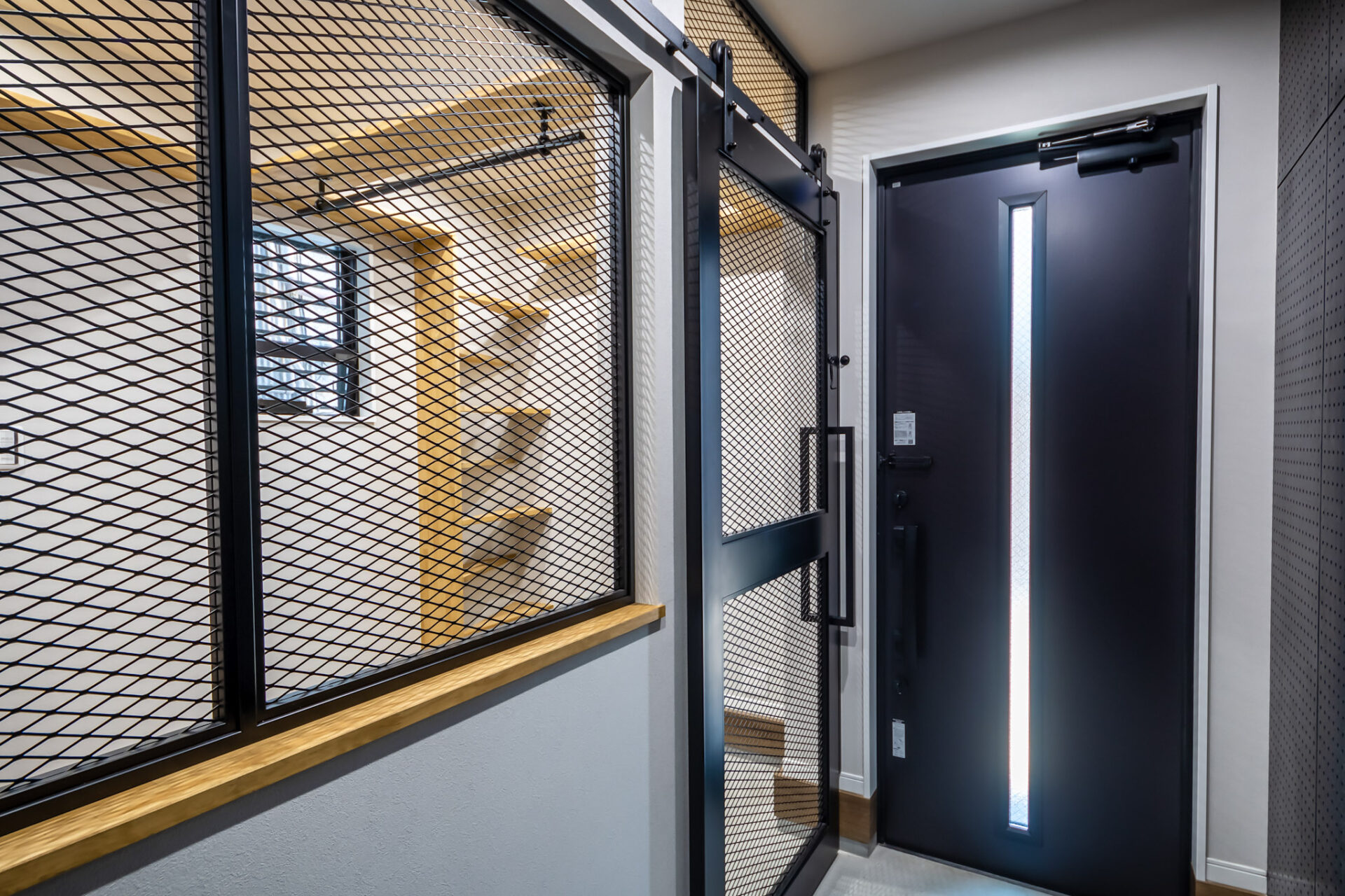 脱走防止扉を抜けた先の空間には、キャットウォークが。帰ってきたら、猫ちゃんがこのキャットウォークから脱走防止扉を覗きお迎えしてくれるかもしれません。