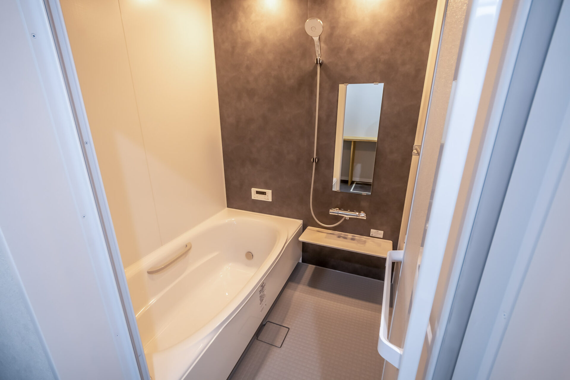 バスルームは賃貸には珍しい1616サイズのゆとりある設計で、しっかりとリラックスできる空間に仕上げています。