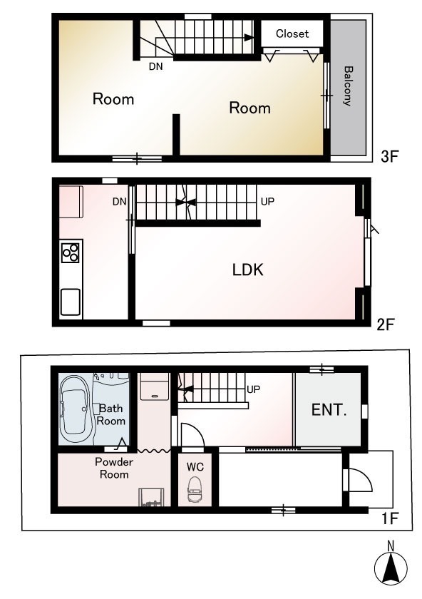 1階にはトイレと洗濯スペース、お風呂を集約。