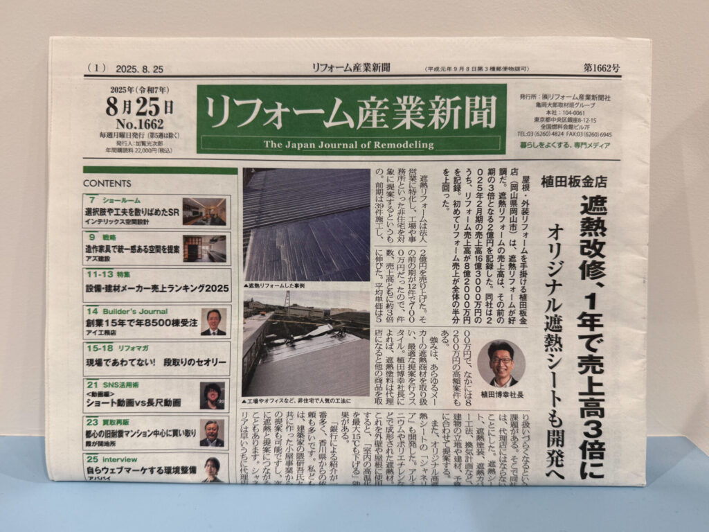 リフォームの専門紙「リフォーム産業新聞」に掲載されました。