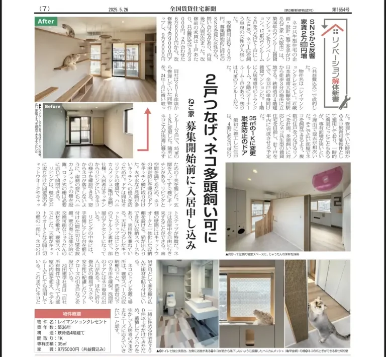 全国賃貸住宅新聞にリノベーション事例が掲載されました。