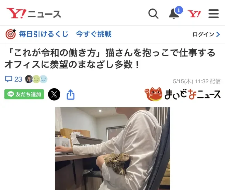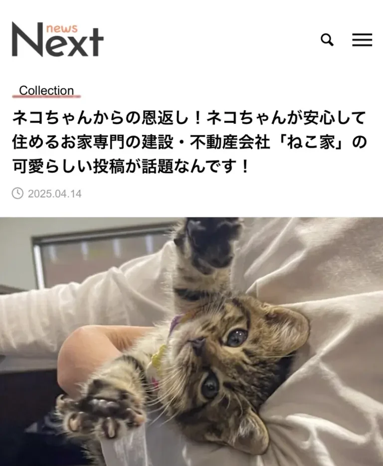 ネコ好きが集まっている会社として「NEWS NEXT」に掲載されました。