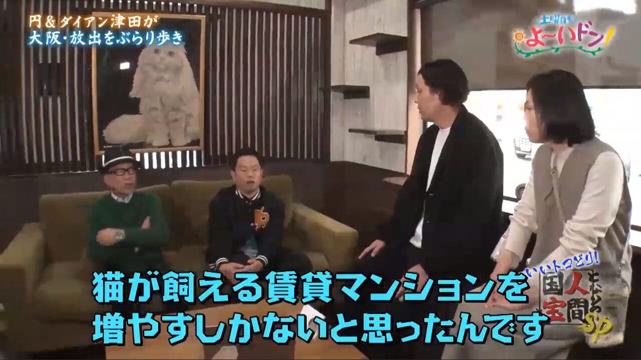 2024.02.20 メディア 関西テレビ「よ〜いドン!」に出演しました。 カンテレ「よ~いドン! 」にねこ大家が出演いたしました。「となりの人間国宝さん」のコーナーで円広志さん、ダイアン津田さんと猫と暮らす家についてお話しさせていただきました。出演者さま、スタッフの皆さま、楽しいロケをありがとうございました。 前の記事 次の記事 一覧へ戻る