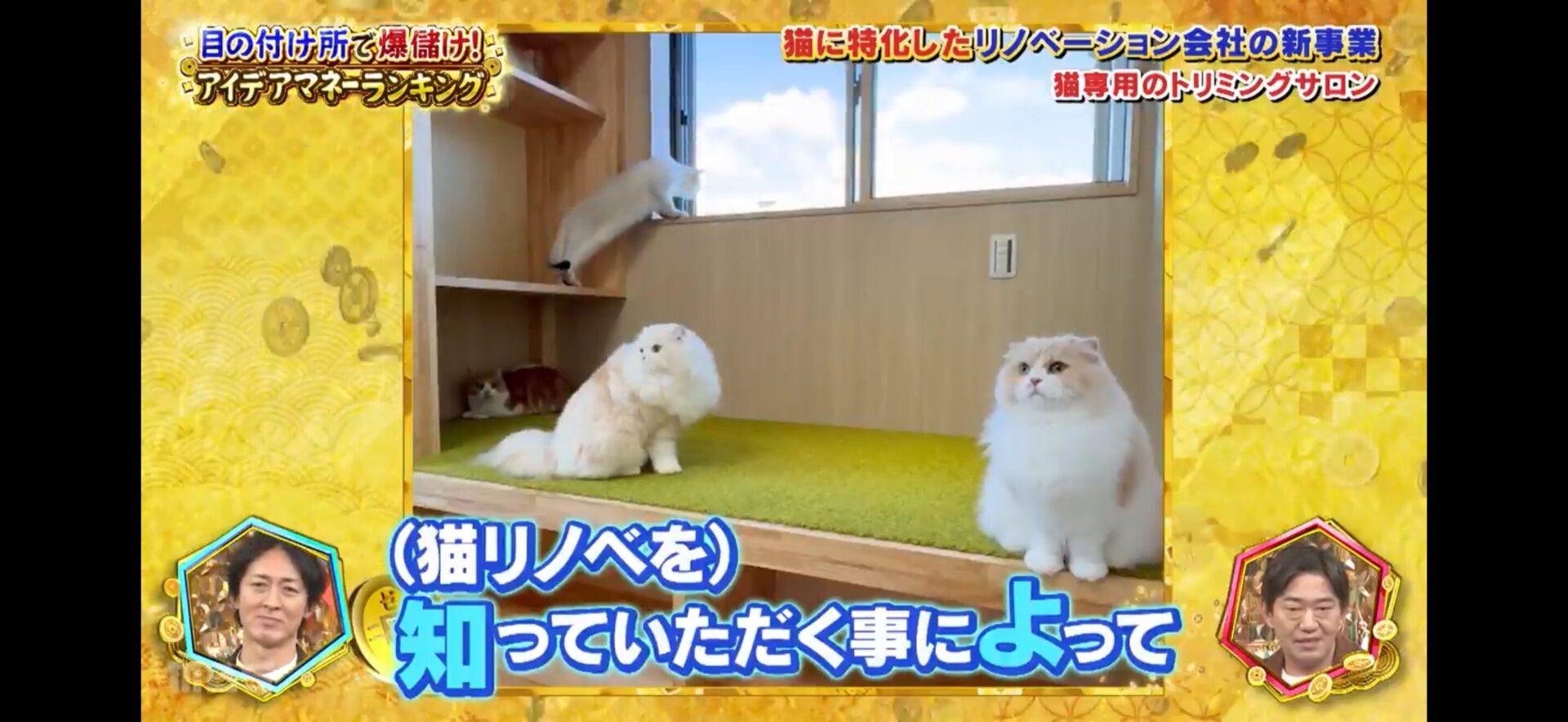 2024.12.11 メディア MBS「ゼニガメ」総集編に出演しました。 MBS「ゼニガメ」の総集編に『ねこ大家』が出演しました。 2度目の出演となりましたが、アイデアランキング1位ということで取材にきていただきました。スタッフの皆様、ありがとうございました。 前の記事 次の記事 一覧へ戻る