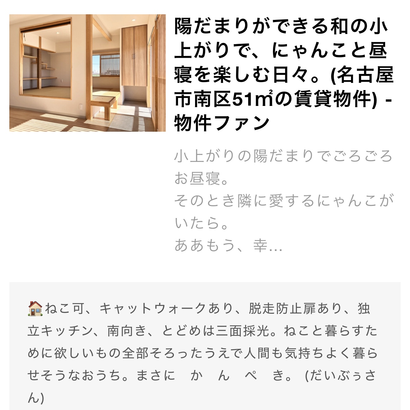 ねこ大家の手がけた猫可賃貸物件が、物件ファンオブザイヤー2024に選ばれていました。