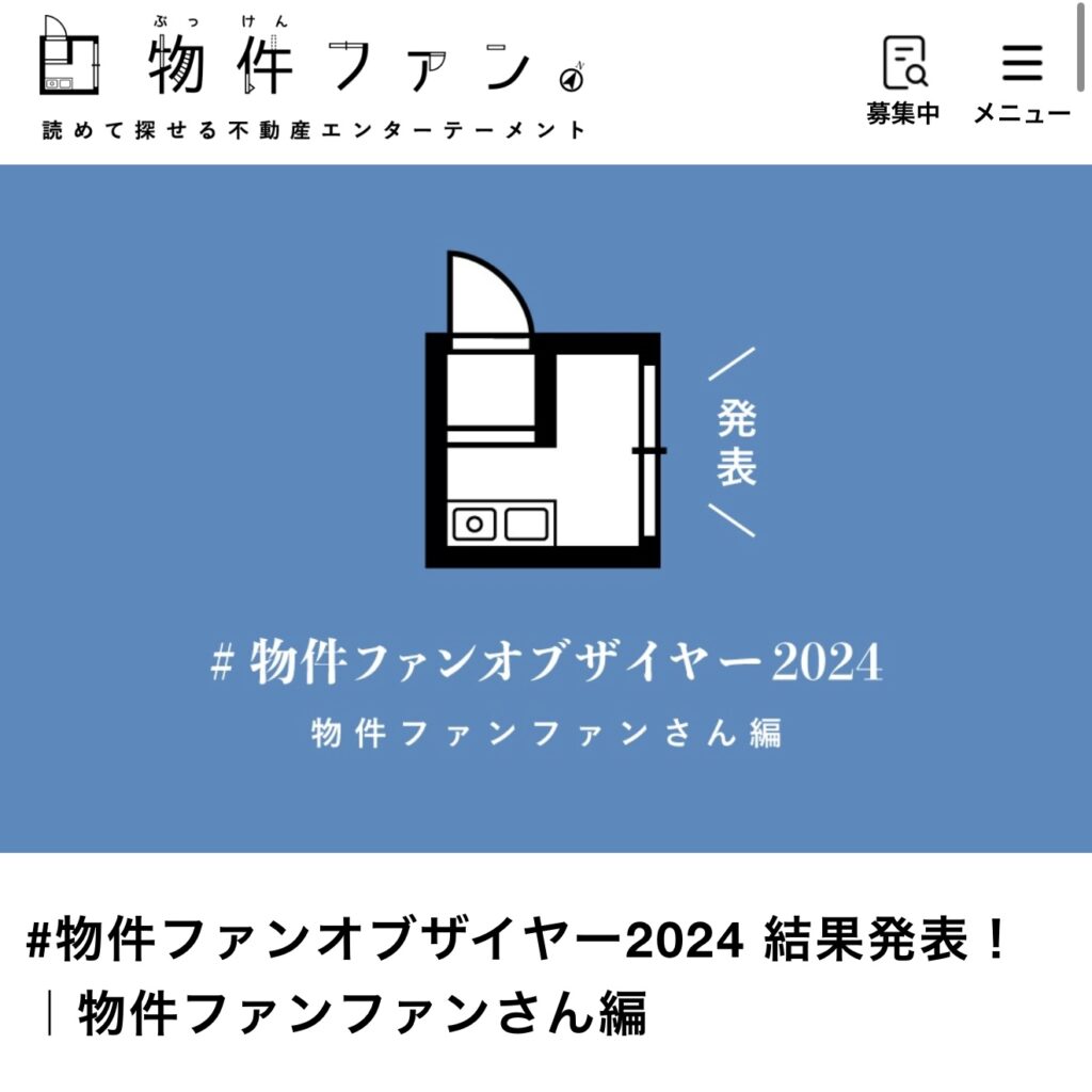 物件ファンオブザイヤー2024に選ばれました。