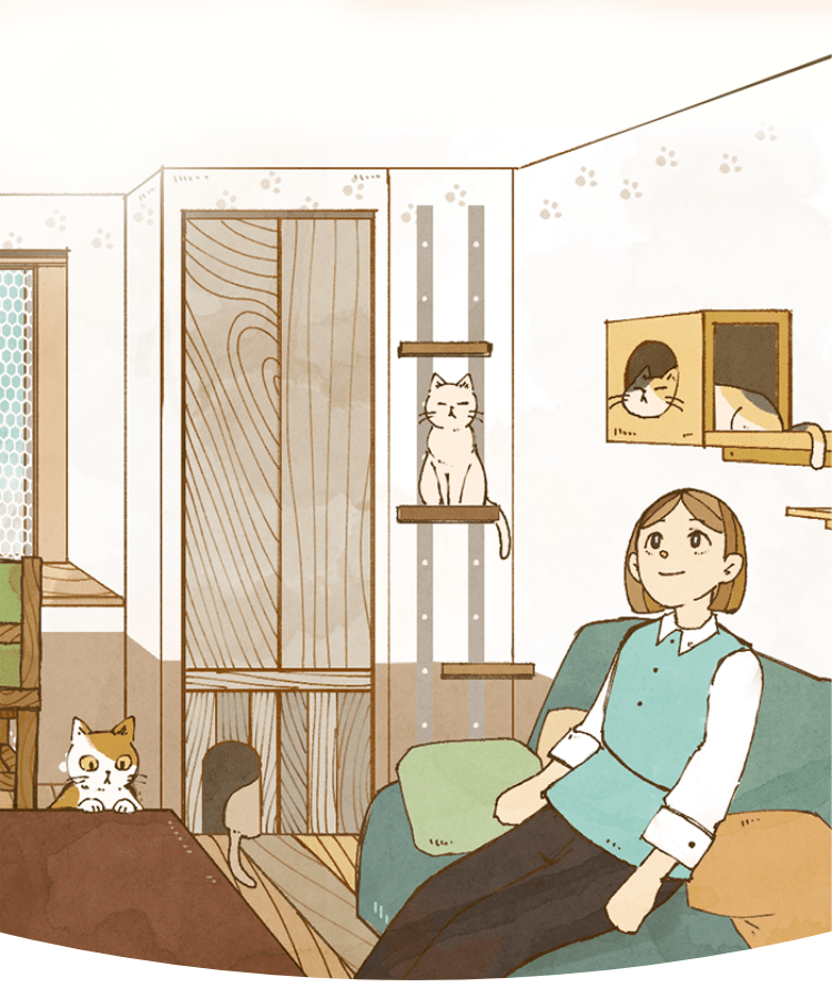 私たちがご提供している「ねこリノベ」とは、猫と人が快適に暮らせるように現在のご自宅(持ち家)をリノベーションすることです。猫に心地よく過ごしてもらうには、単にキャットウォークやキャットステップを取り付ければよいというものではありません。愛猫の性格や運動神経などを考慮し、その子に合った猫設備を設け、住環境を整えていくことが大切です。