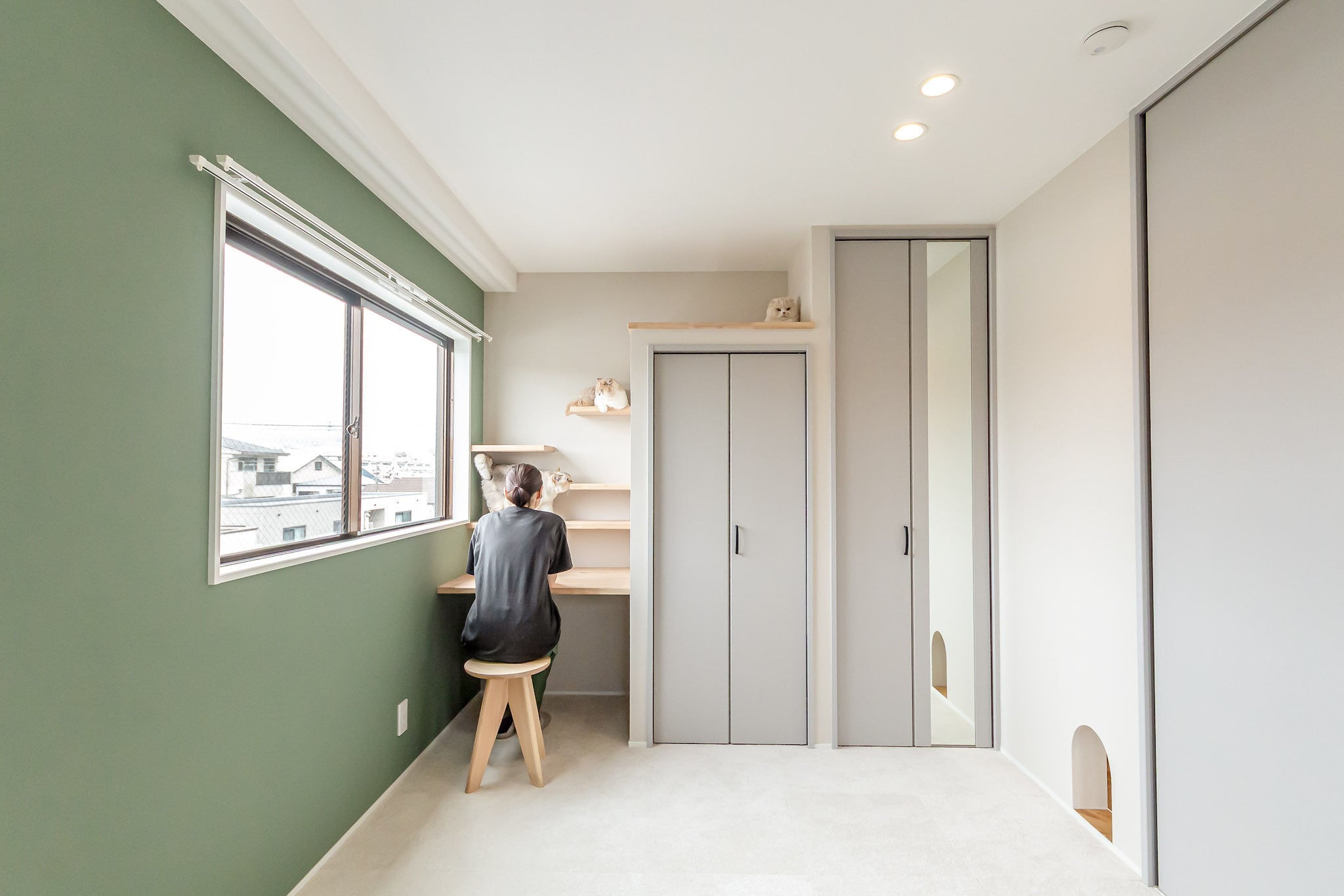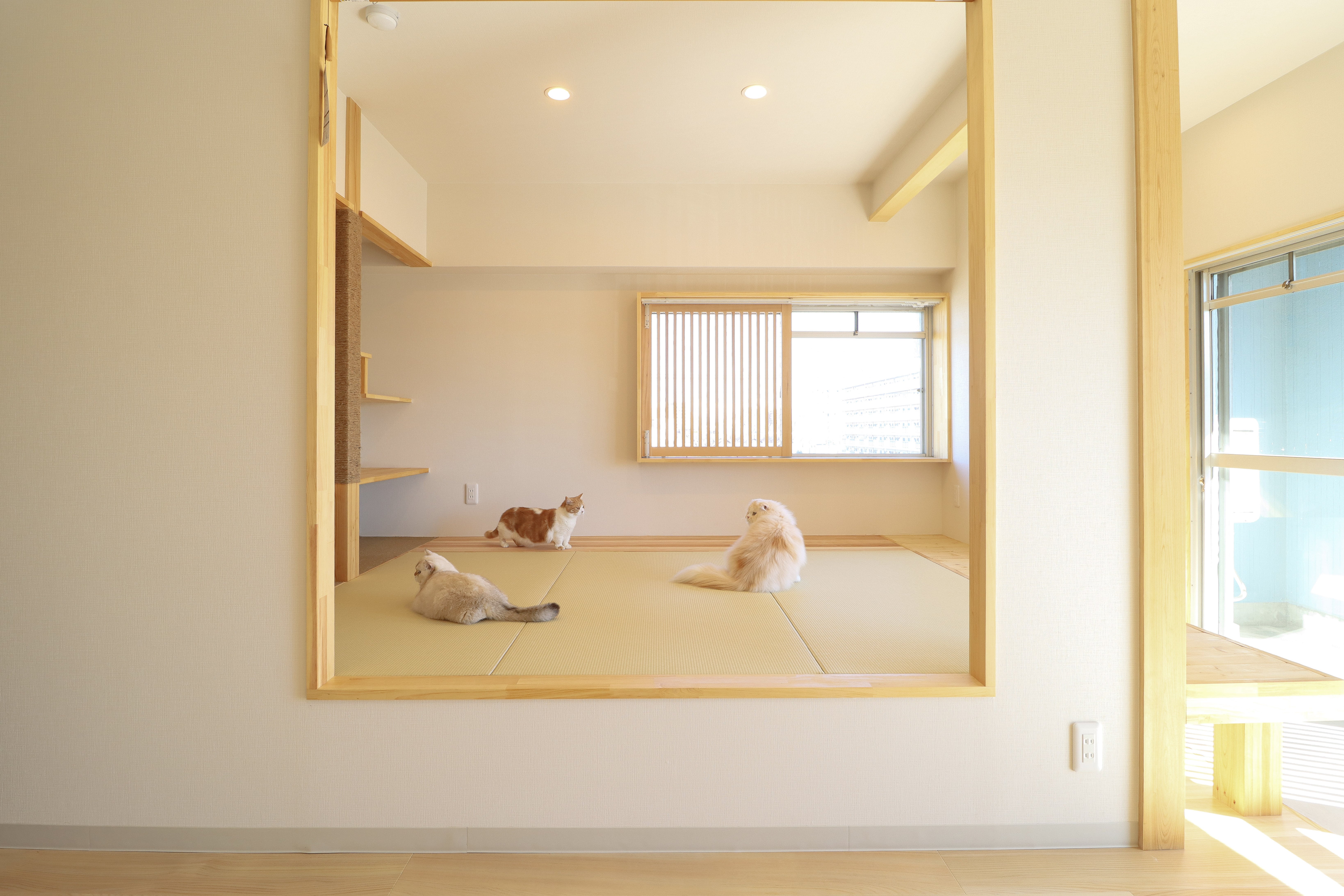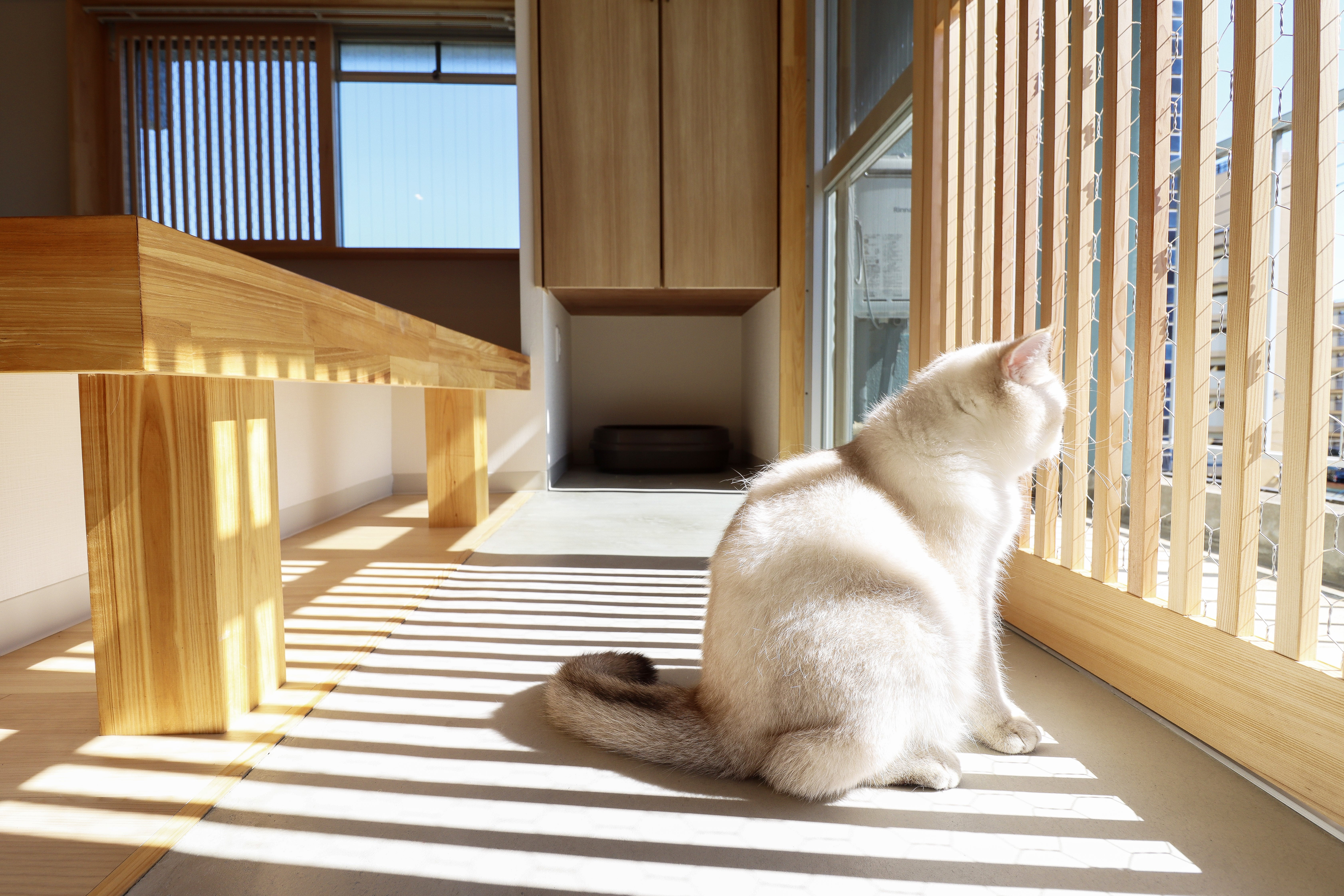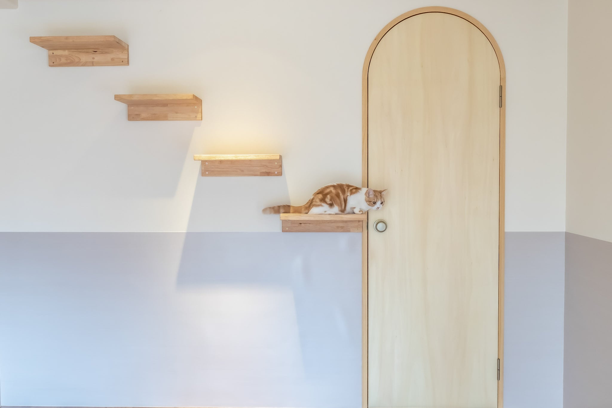 猫がリラックスできる専用スペースやベッドを設けましょう。私たちはこれらの考慮は大前提とし、猫も飼い主さんも嬉しい工夫を長年、リノベーションに取り入れてきました。