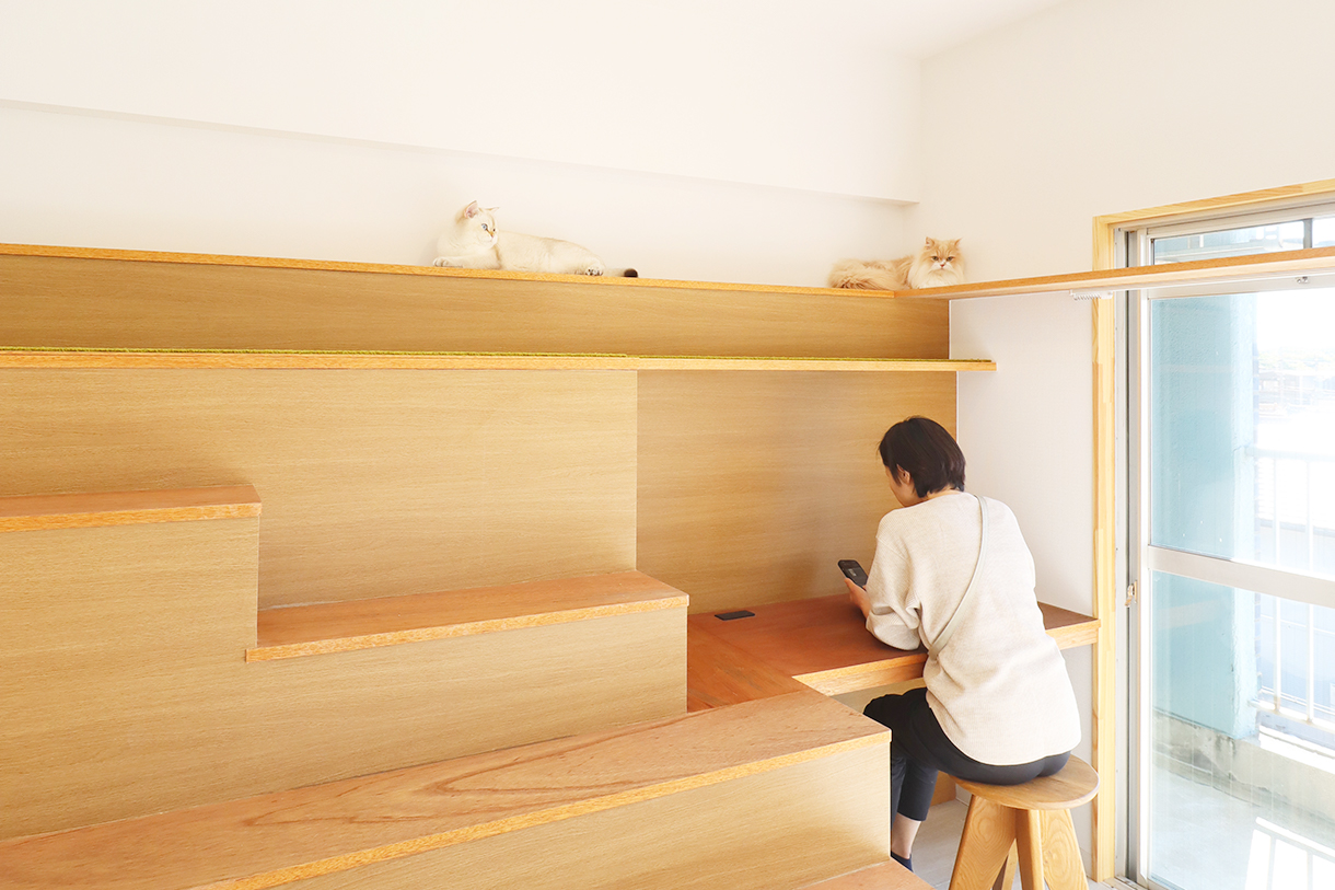 リビングに書斎スペースを兼ねた大階段! 進入防止対策(キッチン) 爪とぎ柱 キャットウォーク 脱走防止対策(ベランダ・腰窓) 脱走防止扉 猫トイレ 猫階段 コンセプト 大階段があるお部屋 大きな階段は僕たち猫がくつろげる憩いの場 飼い主さんがゆっくりと本を読んでいるときも一緒にいられるね。 キッチンへの進入防止対策もばっちりです! リノベ情報 所在地愛知県名古屋市 築年数(完工時)築43年(1981年) 家族構成二人暮らし 間取り1LD+K 広さ51㎡ 建物種別賃貸マンション 一覧へ戻る ほかのねこリノベ紹介を見てみる キャットBOX キャットウォーク キャットステップ キャットタワー キャットトンネル にゃるそっく窓 脱走防止対策(ベランダ・腰窓) 脱走防止扉 猫トイレ その他 ご自宅を猫リノベーション 戸建て/4LDK/105㎡ 進入防止対策(キッチン) キャットウォーク キャットステップ 猫トイレ その他 中古住宅×猫リノベ 分譲マンション/2LDK/65㎡ 進入防止対策(キッチン) キャットBOX キャットウォーク キャットステップ 脱走防止対策(ベランダ・腰窓) 中古戸建てを購入して猫リフォーム 戸建て/4LDK/120㎡ キャットBOX キャットウォーク キャットステップ 脱走防止対策(ベランダ・腰窓) 分譲マンション×猫リフォーム 分譲マンション/3LDK/73㎡ 進入防止対策(キッチン) キャットBOX キャットウォーク キャットステップ キャットトンネル にゃるそっく窓 脱走防止対策(ベランダ・腰窓) 脱走防止対策(玄関扉) 猫トイレ 猫階段 独立型キッチン 新築3階建て「たった10坪で叶えた猫と暮らす家」 戸建て/1LD+K/66㎡ 脱走防止対策(ベランダ・腰窓) 脱走防止扉 ご自宅の脱走防止対策 戸建て 進入防止対策(キッチン) キャットBOX キャットウォーク にゃるそっく窓 脱走防止対策(ベランダ・腰窓) 猫階段 独立型キッチン 壁が階段?!猫も人もわくわくするお部屋 賃貸マンション/1LD+K/51㎡ 進入防止対策(キッチン) 爪とぎ柱 キャットBOX キャットステップ キャットトンネル にゃるそっく窓 脱走防止対策(ベランダ・腰窓) 独立型キッチン ゆっくりと時間が流れる和を感じるお部屋 賃貸マンション/1LD+K/51㎡ 進入防止対策(キッチン) キャットBOX キャットウォーク にゃるそっく窓 脱走防止対策(ベランダ・腰窓) 猫トイレ お家の中にジャングルジム?! 猫も人も家の中にいて楽しい空間 賃貸マンション/1LD+K/51㎡ 進入防止対策(キッチン) キャットBOX キャットウォーク キャットステップ キャットトンネル 脱走防止対策(ベランダ・腰窓) 脱走防止対策(玄関扉) 猫トイレ 独立型キッチン おしゃれなキャットスカイウォークとトンネルがあるお部屋 賃貸マンション/1LD+K/51㎡