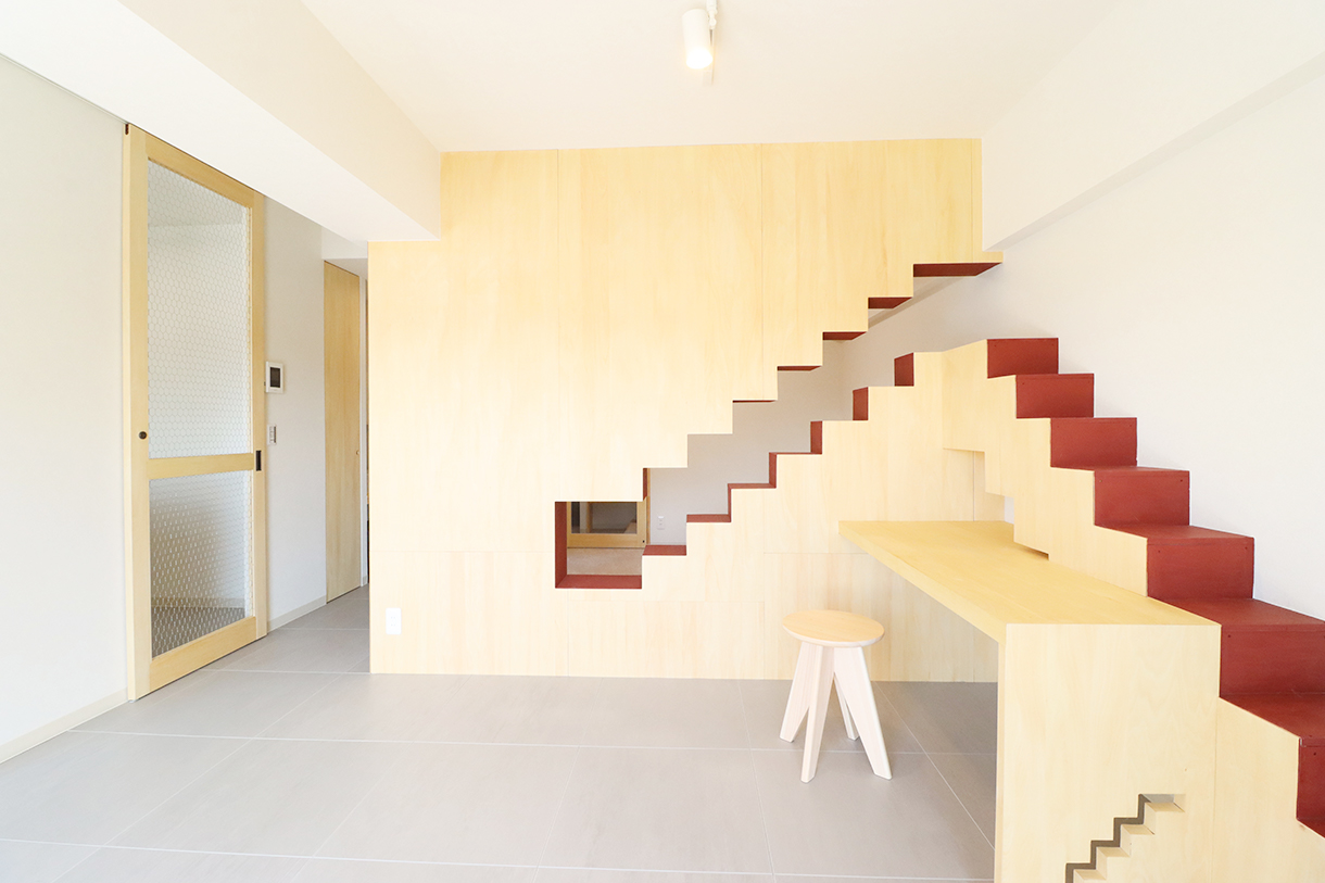 壁の中に階段があるお部屋