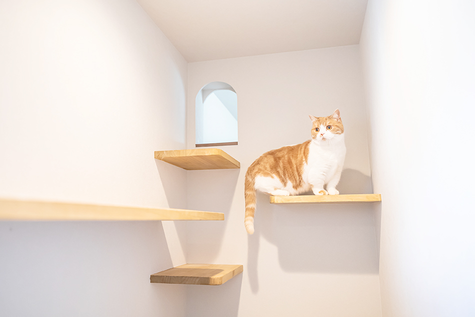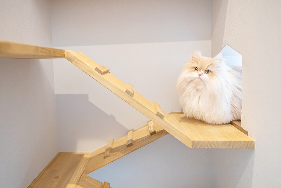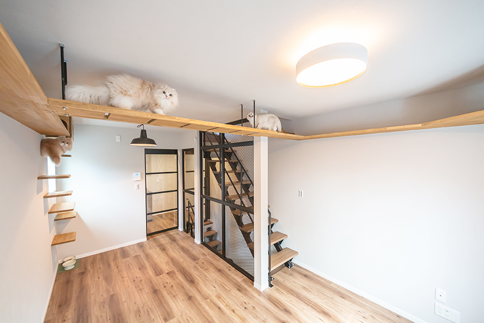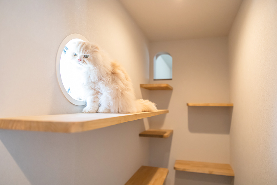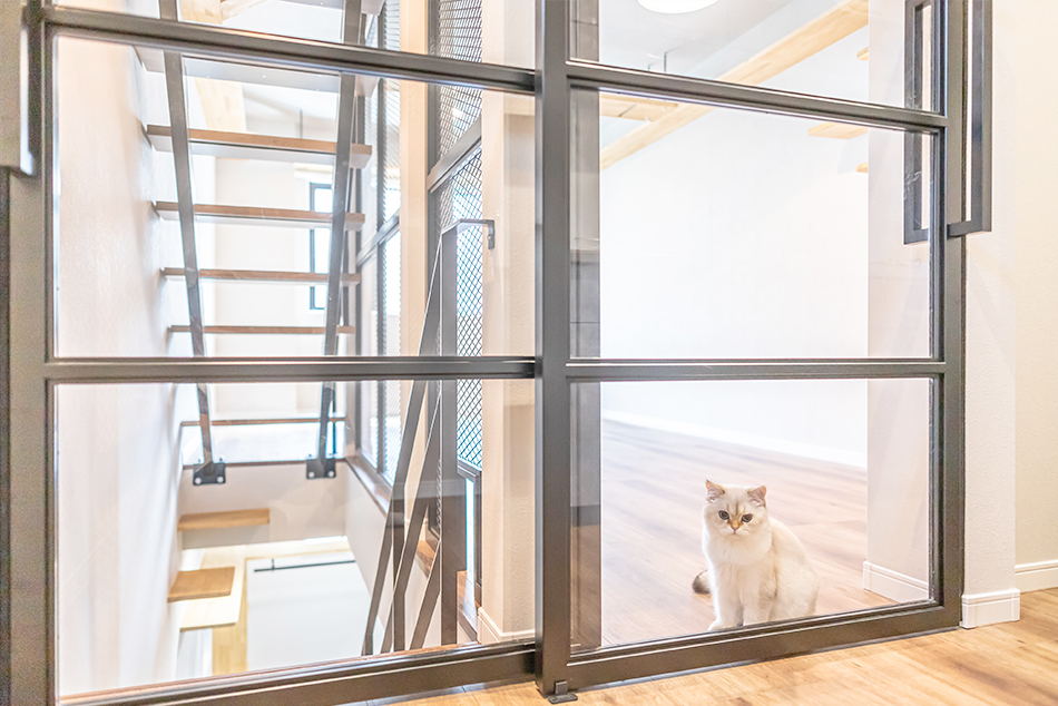 独立キッチン、脱走防止柵、キャットステップやキャットウォーク、にゃるそっく窓、猫トイレも完備!