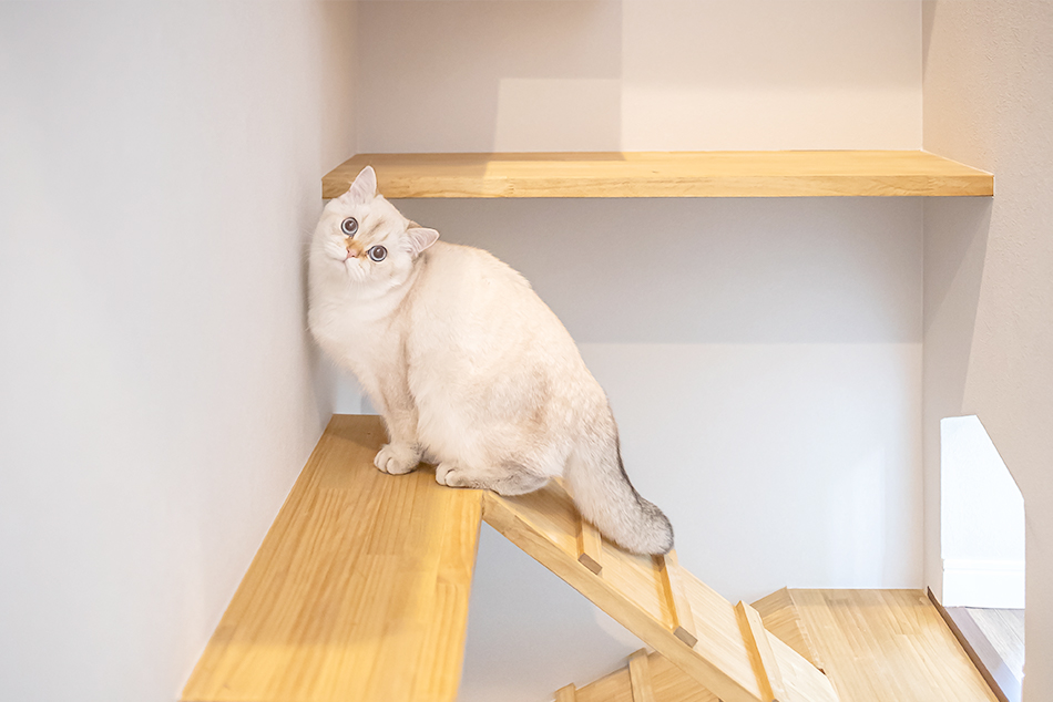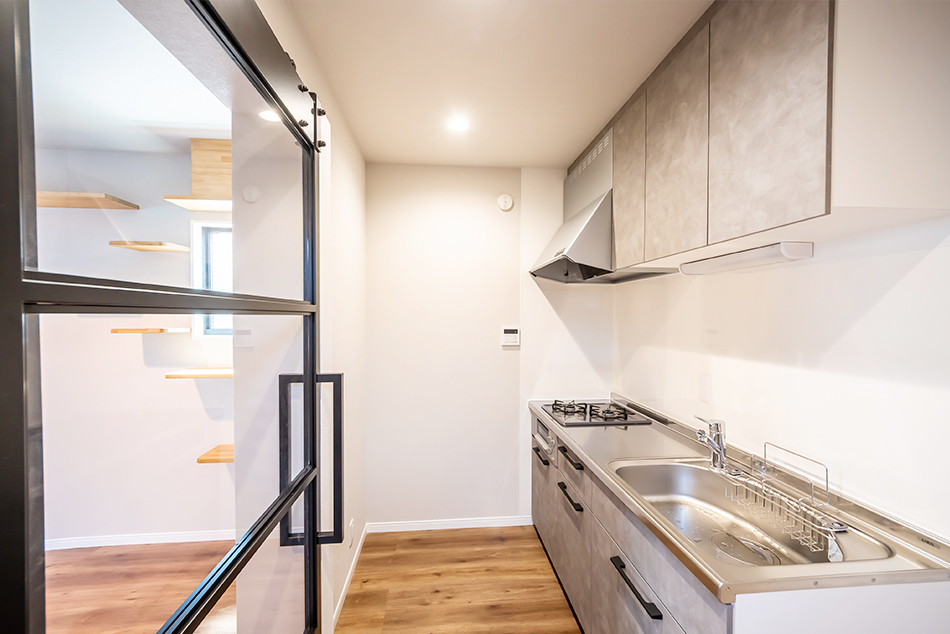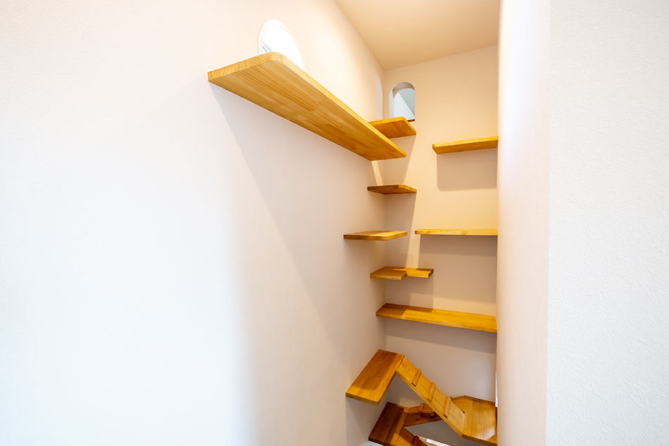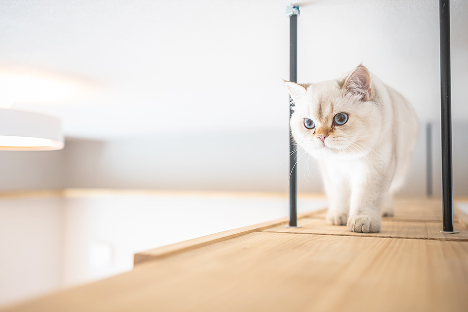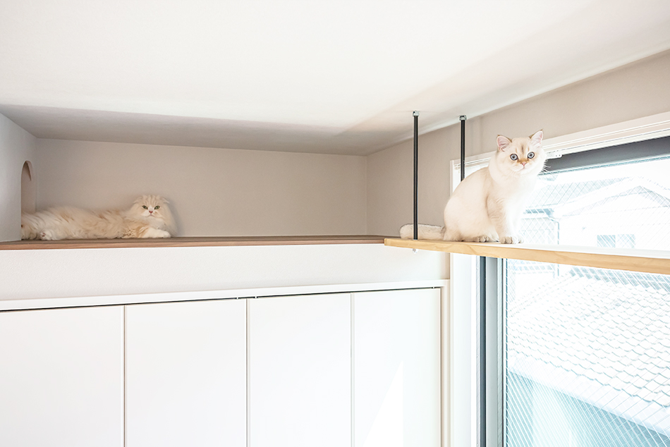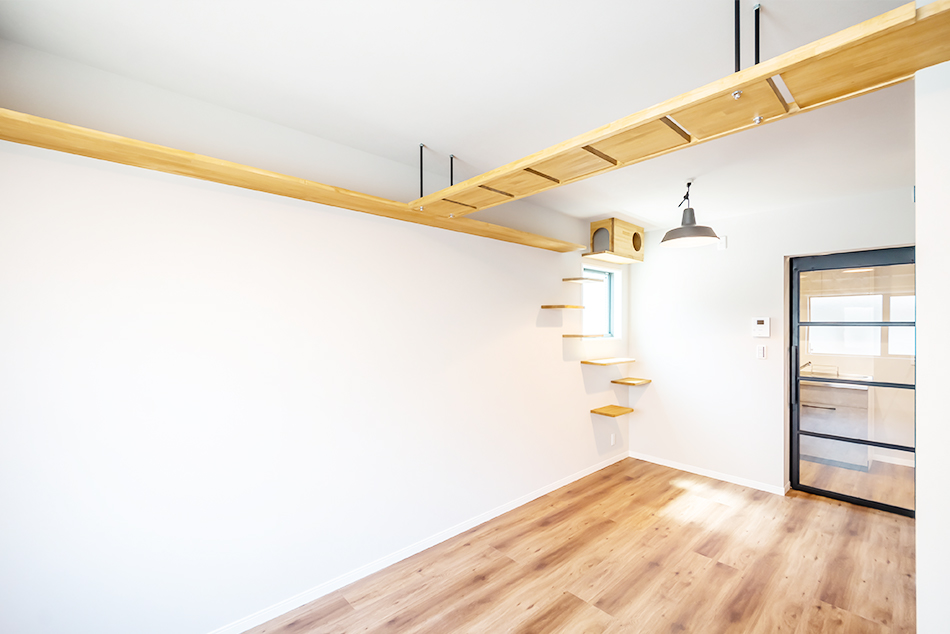 独立キッチン、脱走防止柵、キャットステップやキャットウォーク、にゃるそっく窓、猫トイレも完備!
