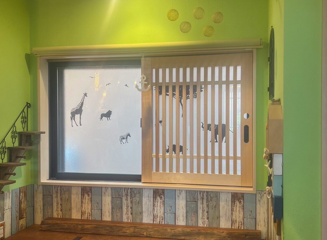 腰窓、掃き出し窓に鍵付きの脱走防止柵を設置しました。